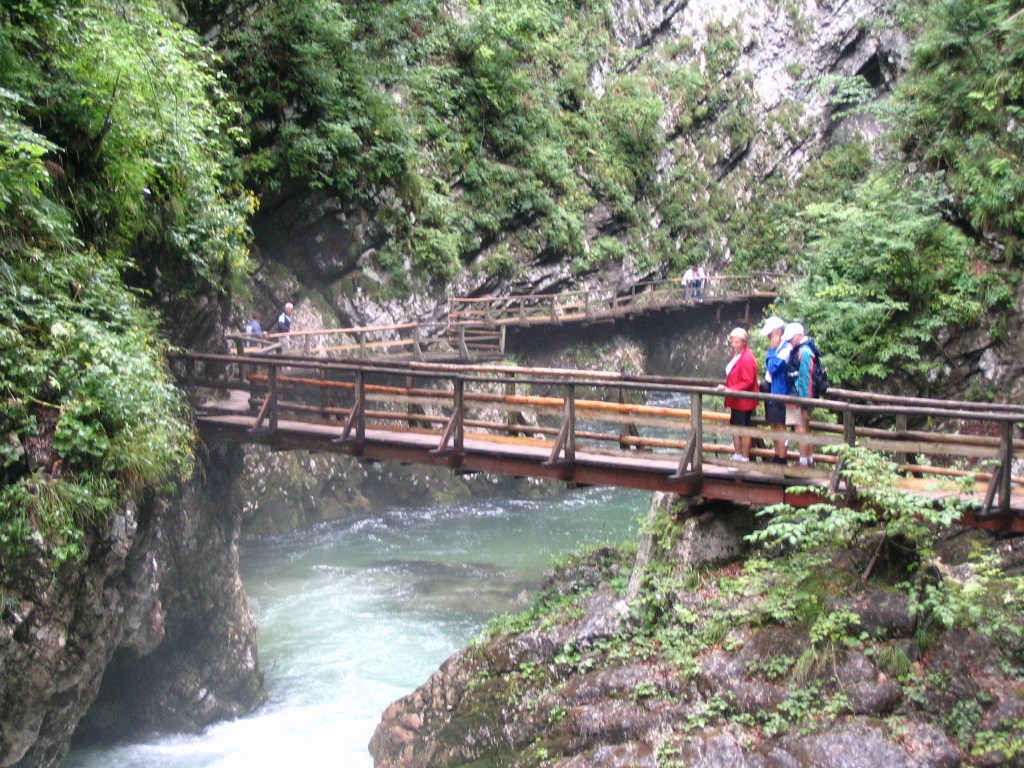 Not far from Bled there is the Vintgar Gorge which, because of its exceptional beauty, was attracting tourists as early as in the 19th century. There are wooden bridges and viewing galleries that lead down the 1.6 km long gorge among waterfalls, pools, and cascades. A stone, single-arch, former railway bridge also towers above the gorge.