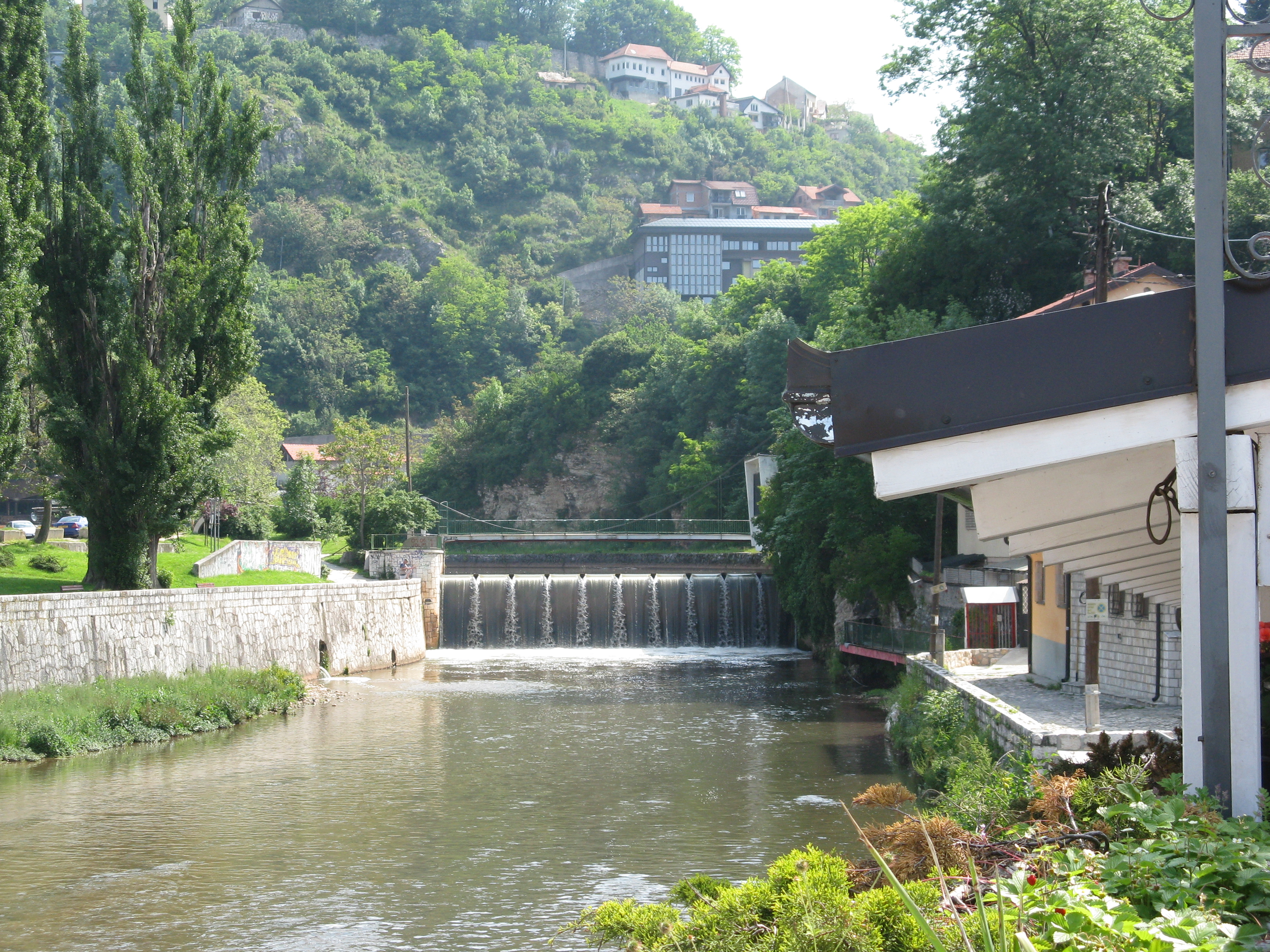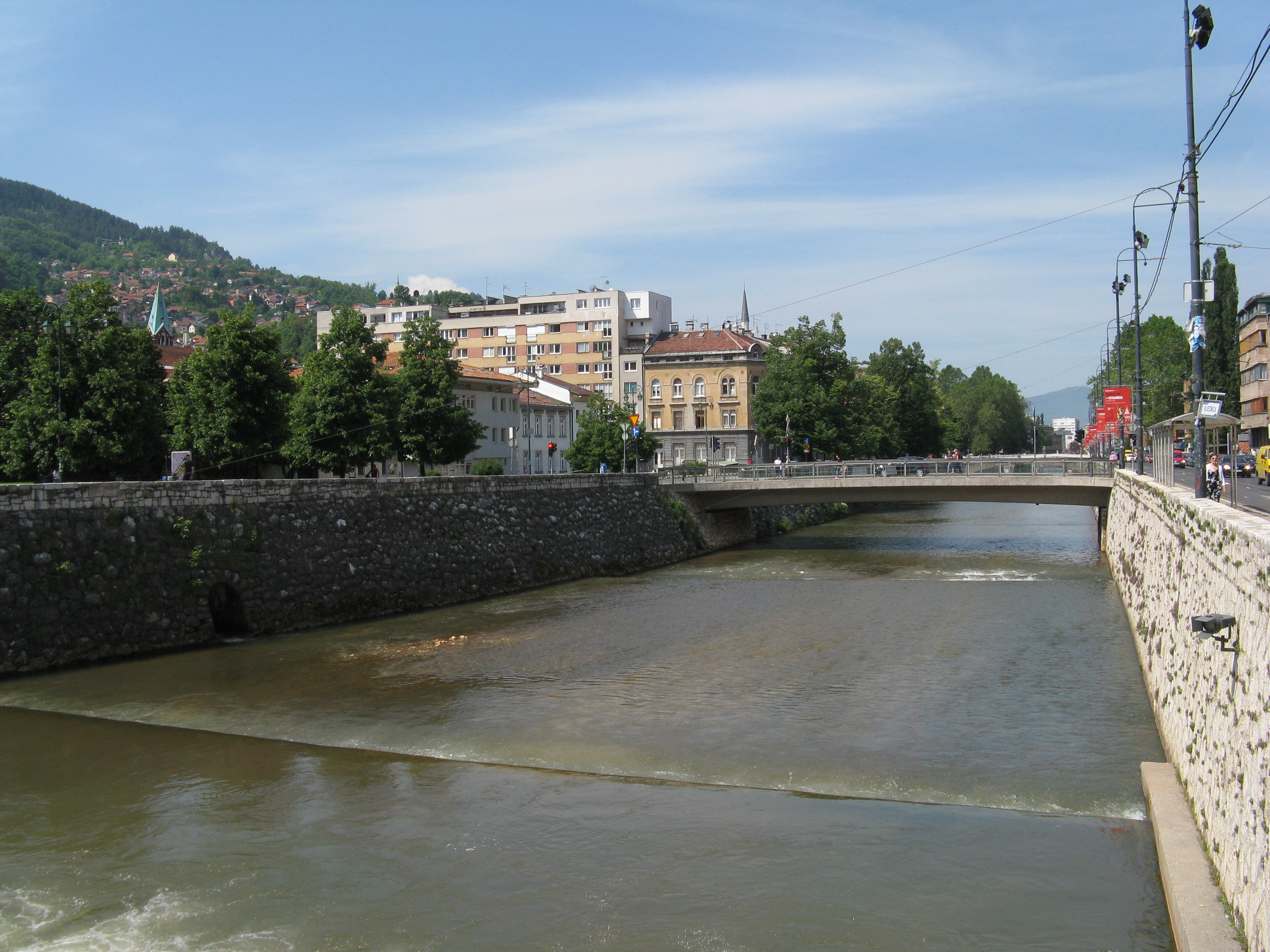 The beautiful Miljacka river which runs through the centre of Sarajevo.
