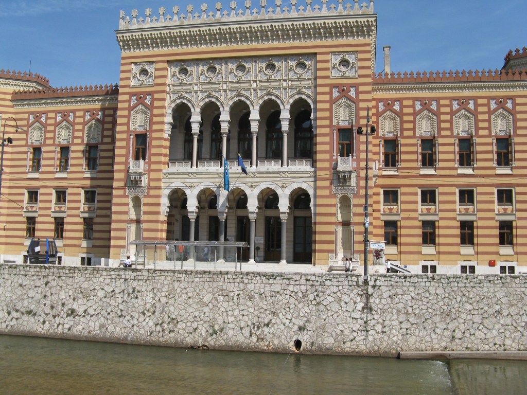 Sarajevo City Hall, known as Vijećnica, is located in the center of the city close to the river. It was designed in 1891 by the Czech architect Karel Pařík, but criticisms by the minister, Baron Benjamin Kallay, caused him to stop working on the project. It was initially the largest and most representative building of the Austro-Hungarian period in Sarajevo and served as the city hall.The building was reopened on May 9, 2014.