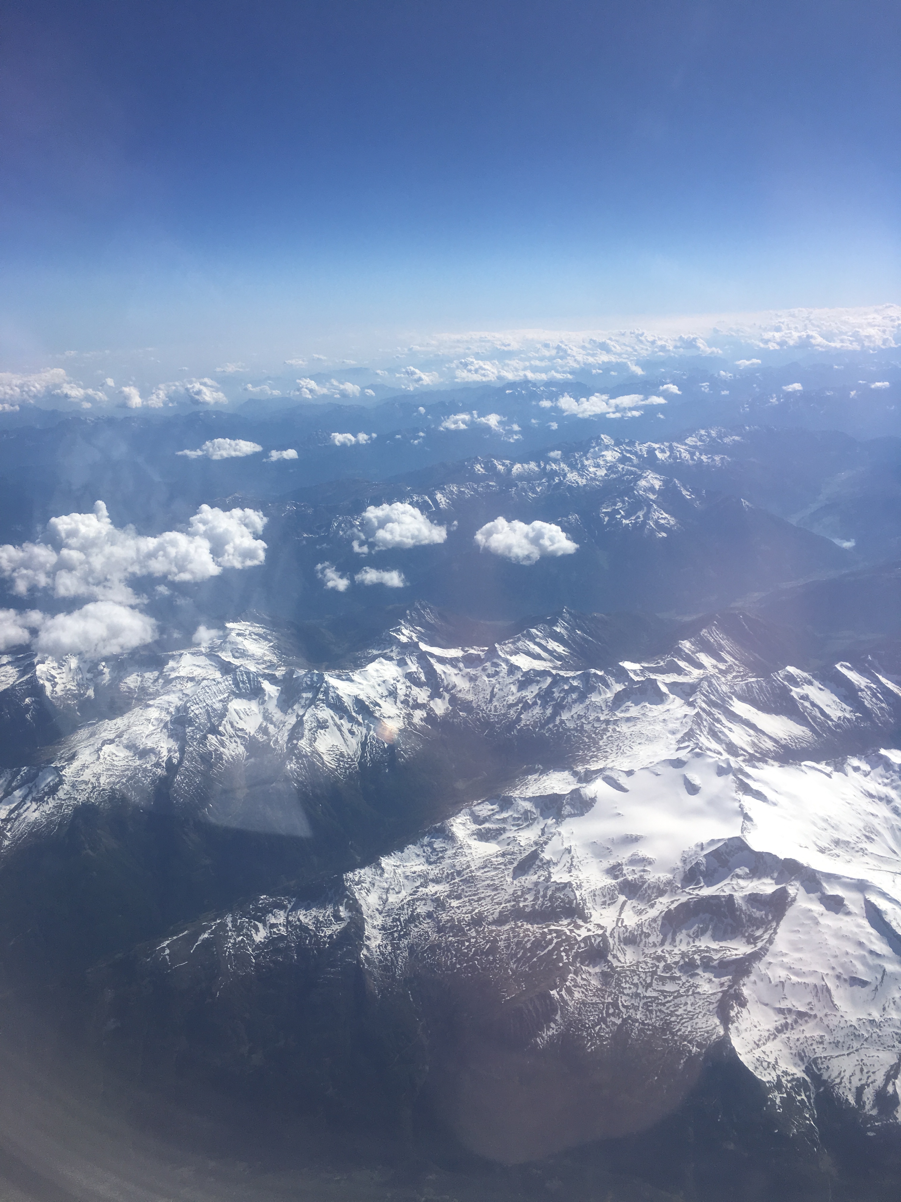 View from the plane as we fly over the Alps heading for Ljubljana Airport.