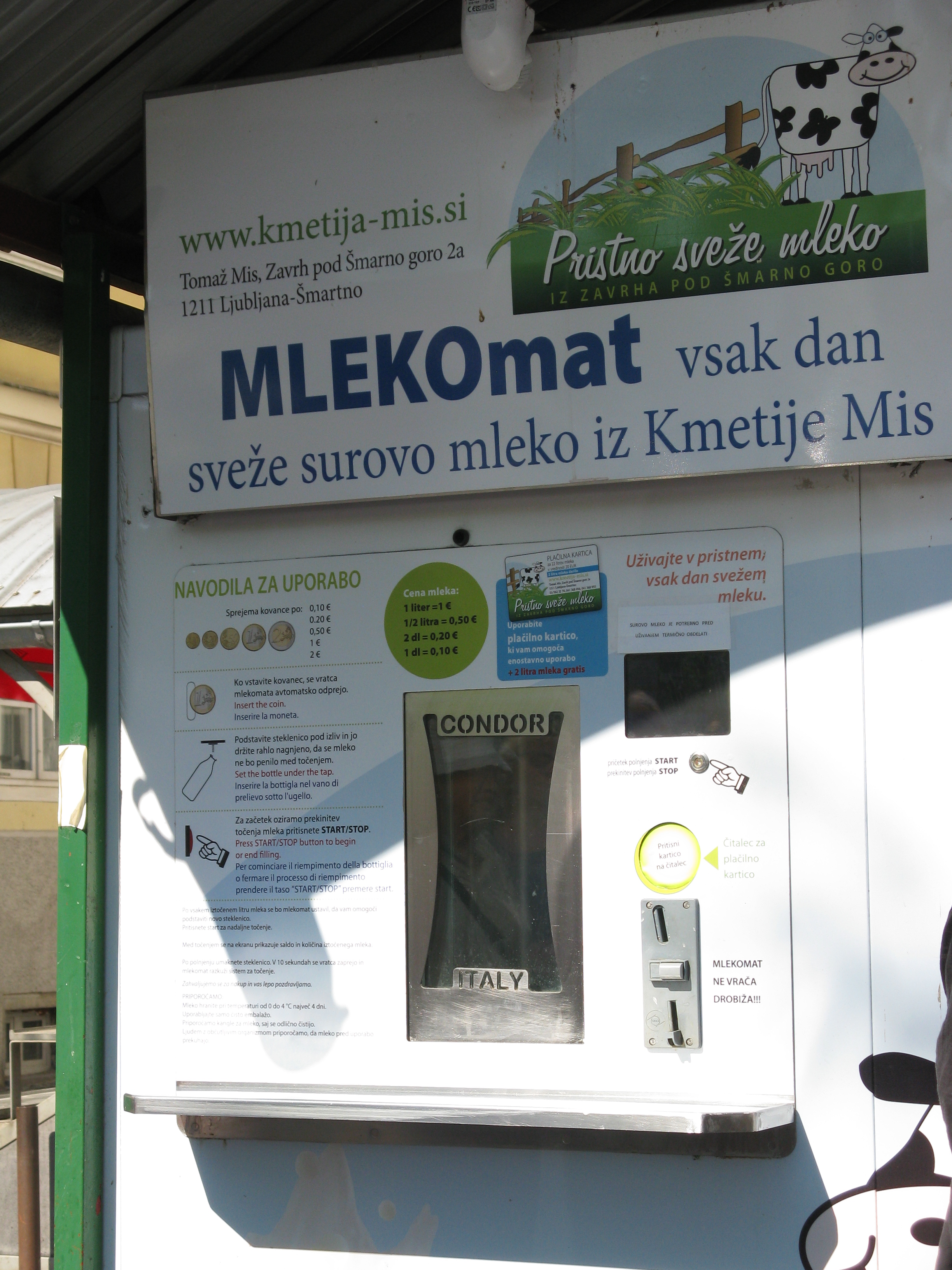 In Ljubljana it is possible to get milk from a machine which contains unpasteurised milk, definitely wouldn’t be able to sell this in the UK.