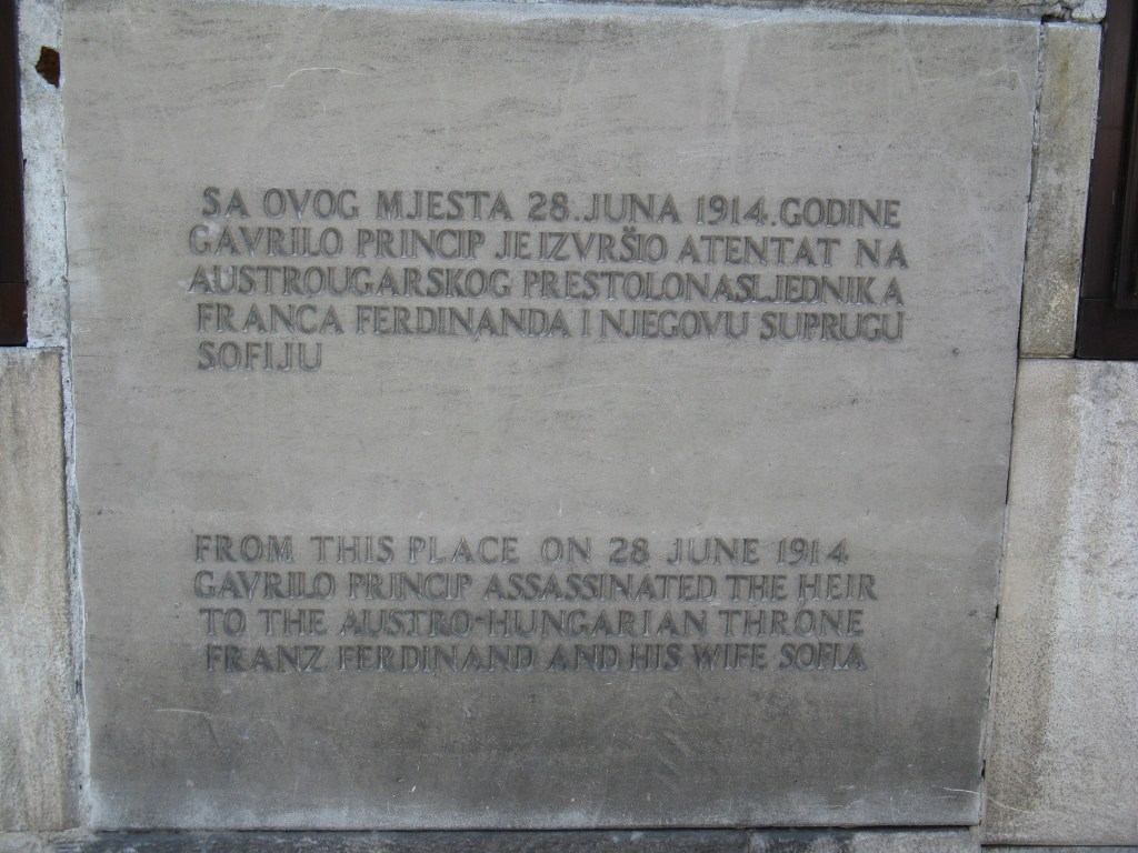 The plaque above indicates here Franz Ferdinand was killed and is tributted to be the cause of the start of the first world war.