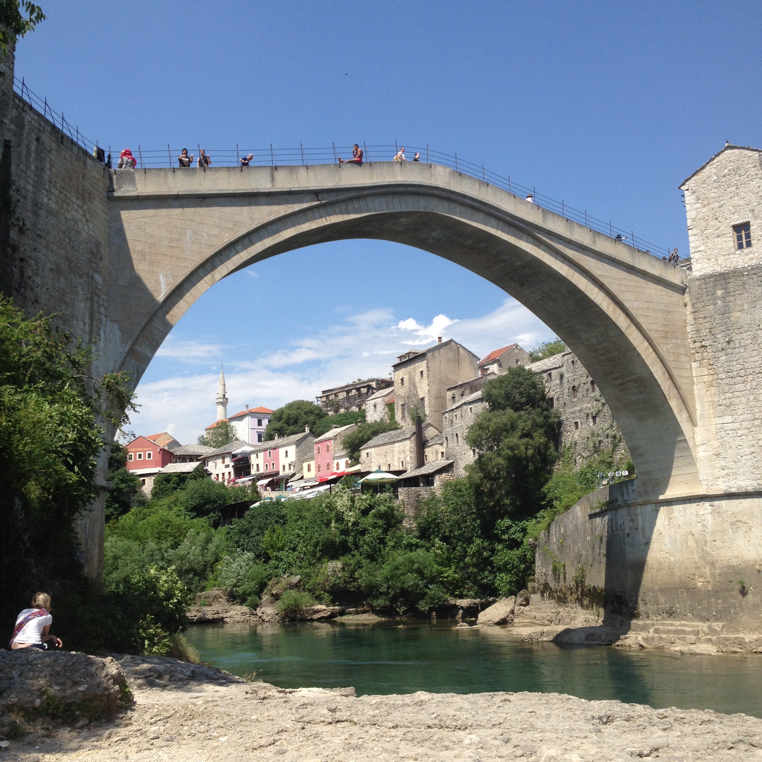 In the afternoon we had a guided walking tour. Mostar is in the Herzegovina region of the country and still displays vivid scars from the 18 months the city was held under siege in the nineties. Much of Mostar was ruined during this period; however, with its relaxed atmosphere it’s hard to believe the conflicts are such recent history. The city still has a very Ottoman feel to it with its winding cobbled stone streets and skyline dotted with domes and minarets. We visited the bazaar, mosque and old city on the way to one of the country’s most famous landmarks, Stari Most. This bridge is a reconstruction of the original Ottoman bridge that was built in the mid-1500’s, but was destroyed by shelling in 1993.