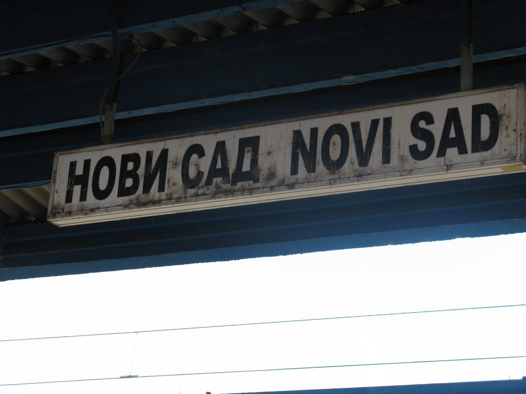 The sign at Novi Sad railway station demonstrating that every sign is shown in the Cyrillic and the Latin alphabets.