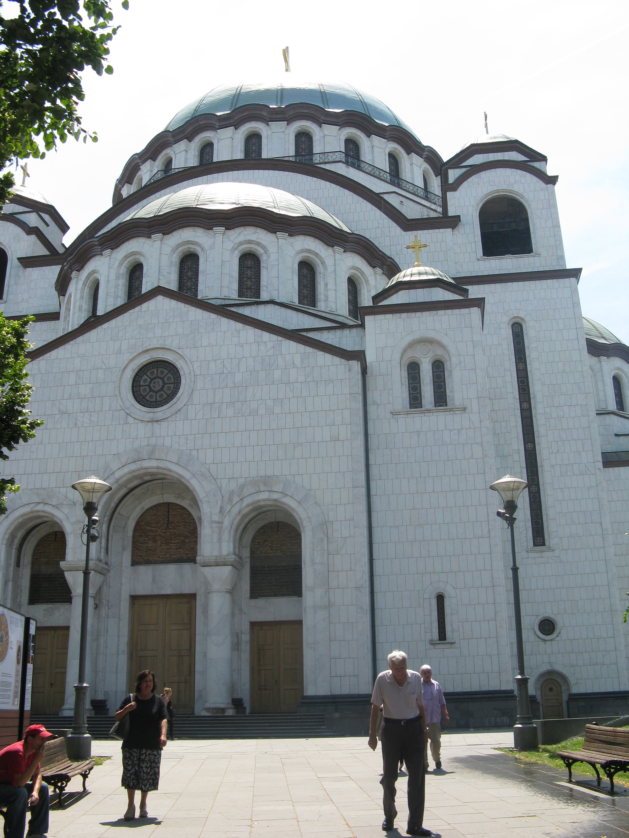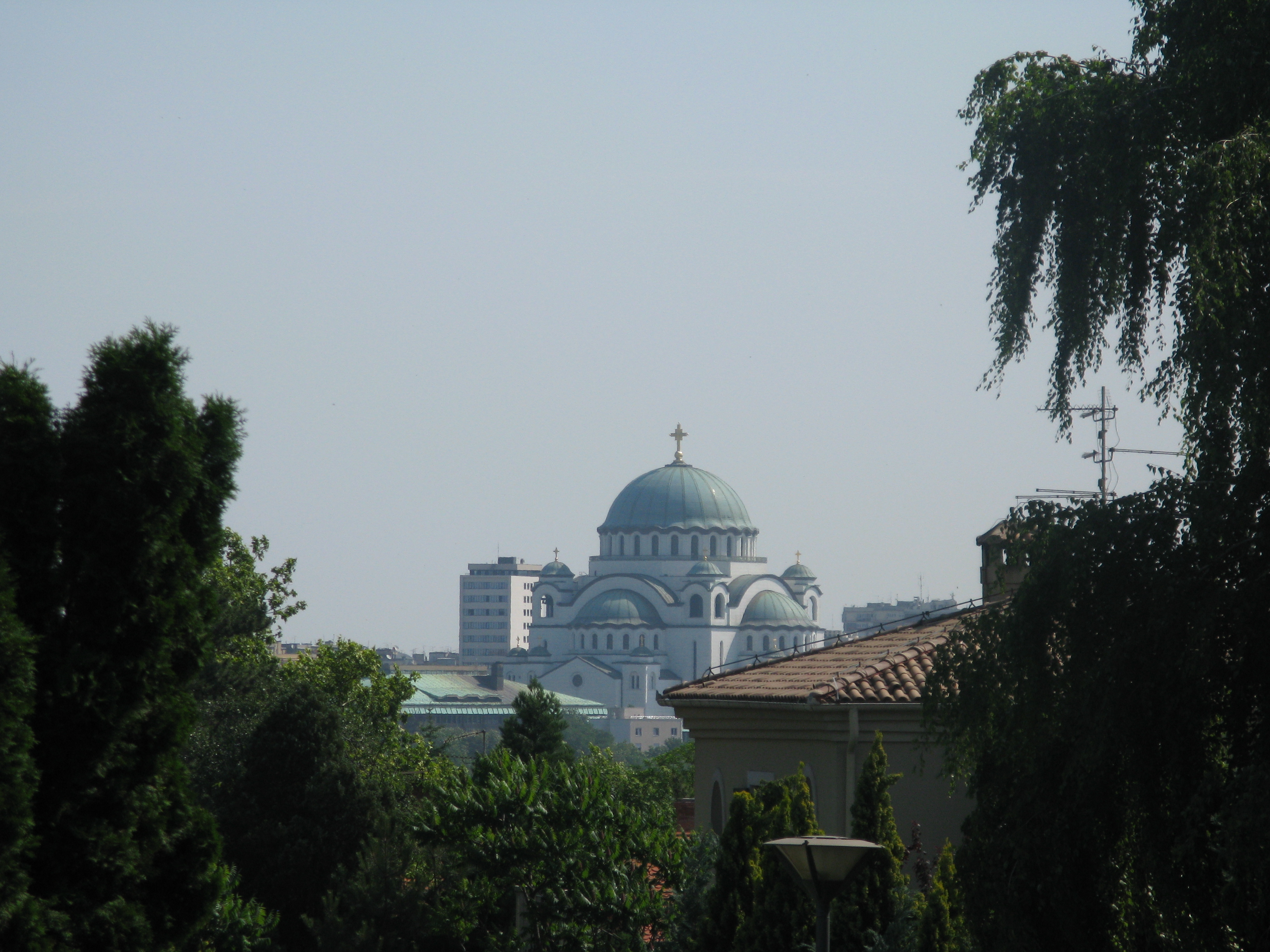 Distant view of Saint Sava Cathedral in Belgrade taken from the house of flowers.
