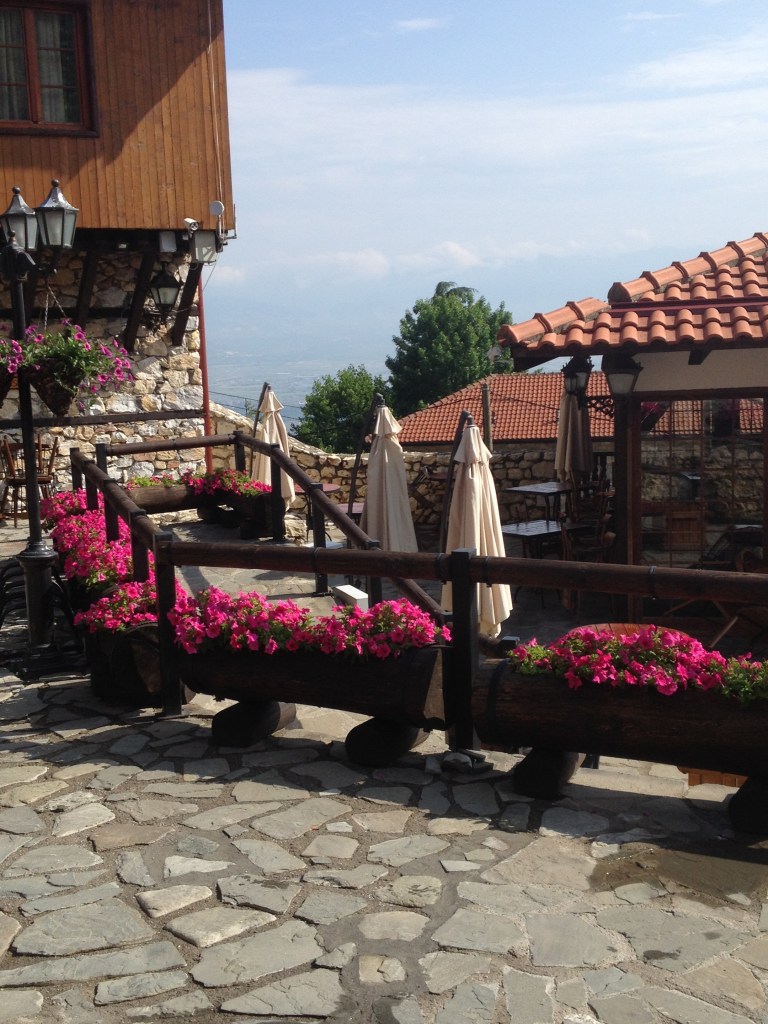 Breakfast stop, this restaurant is in the hills overlooking Skopje where we had a traditional Macedonian breakfast of omelette and a type of porridge.