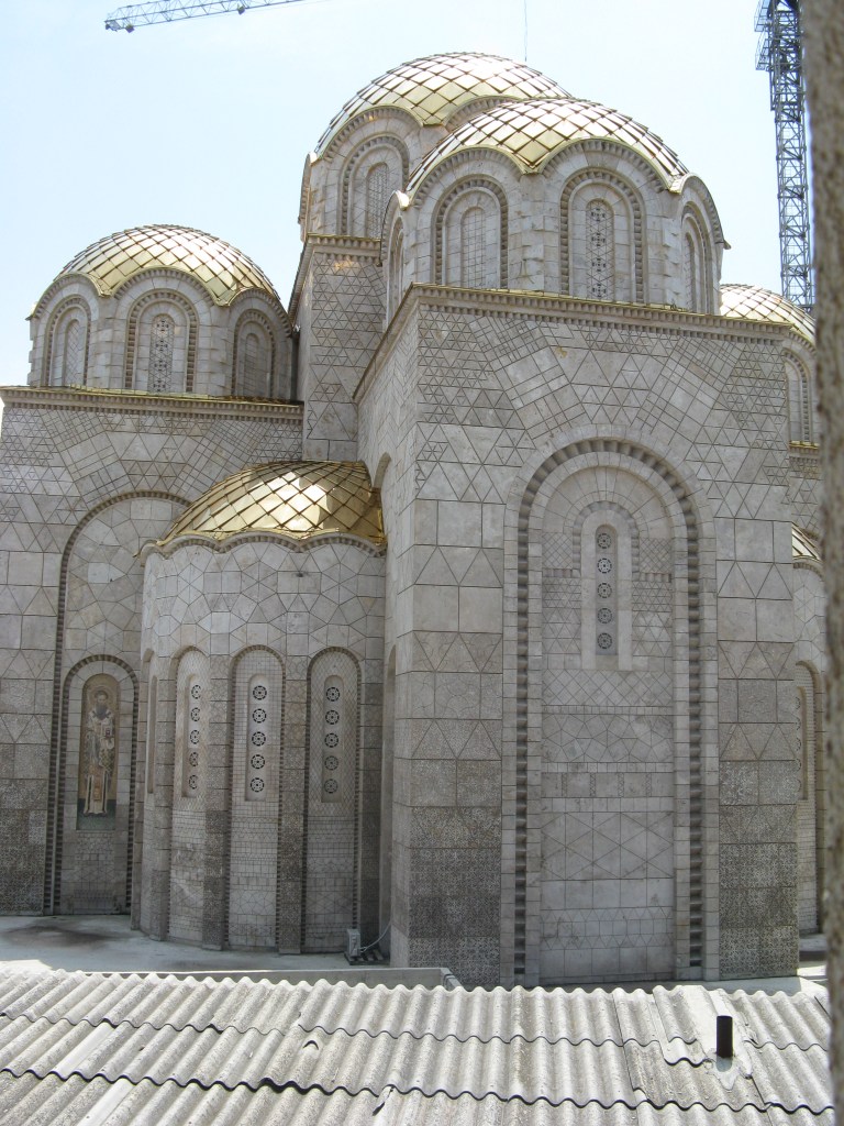 This is the new orthodox church which is currently under construction next to the Memorial House of Mother Teresa. The roof contains real gold.