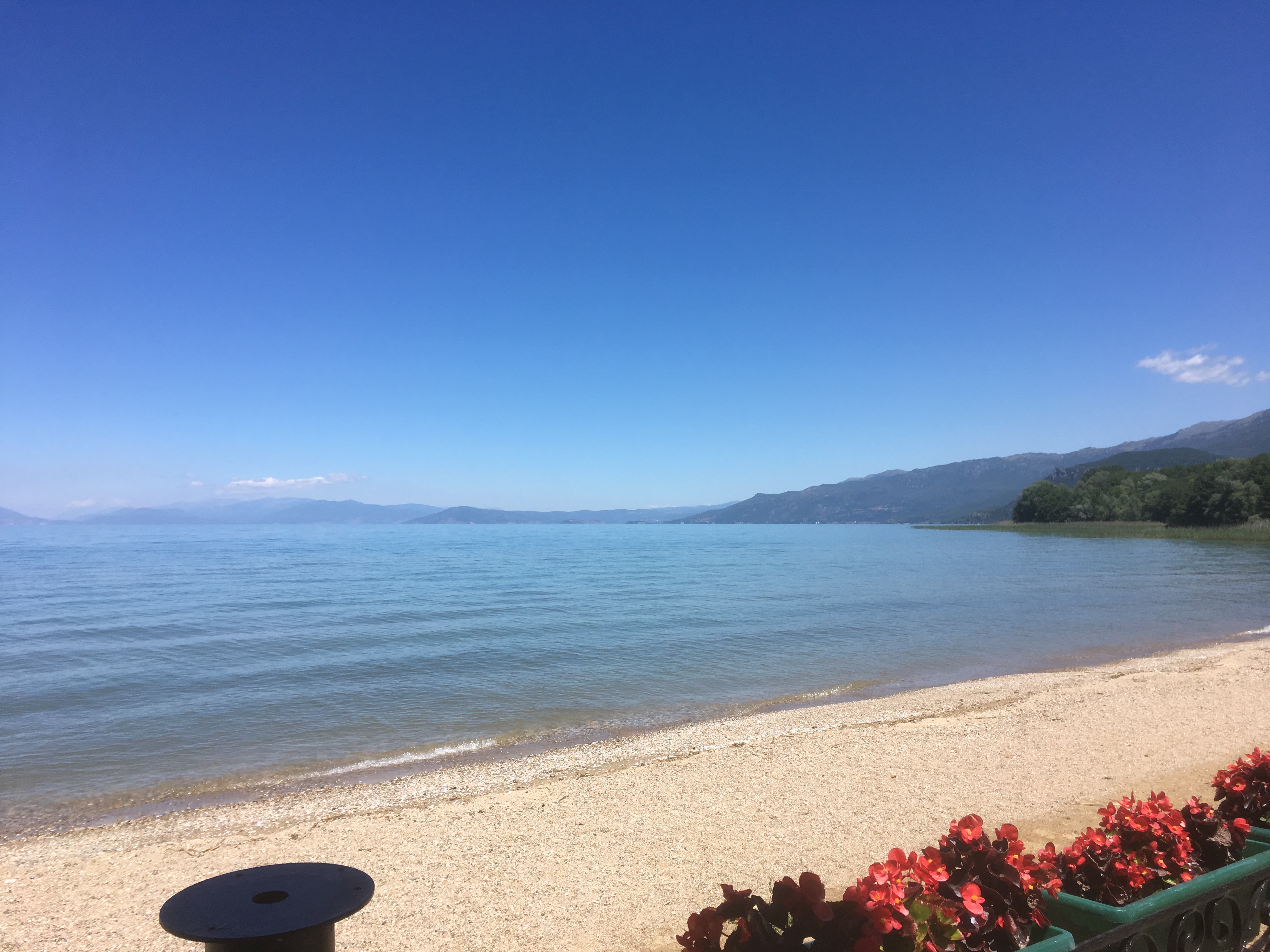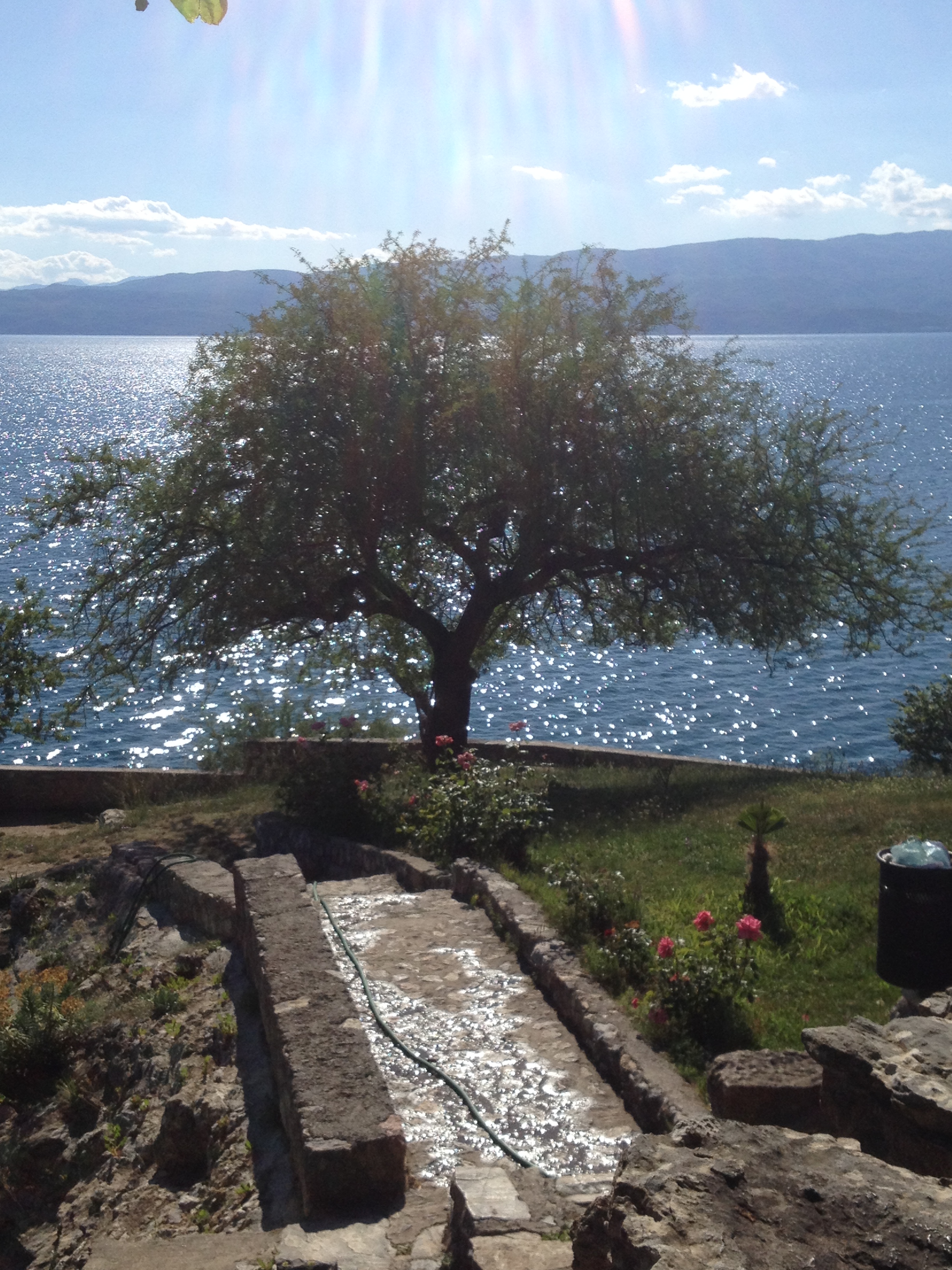 This was our lunch stop at Saint Naum Monastery. If there was chairs and parasols it would be just like a beach on a remote Greek Island.