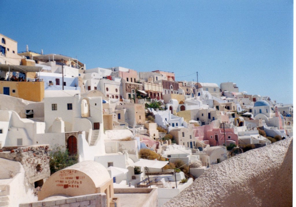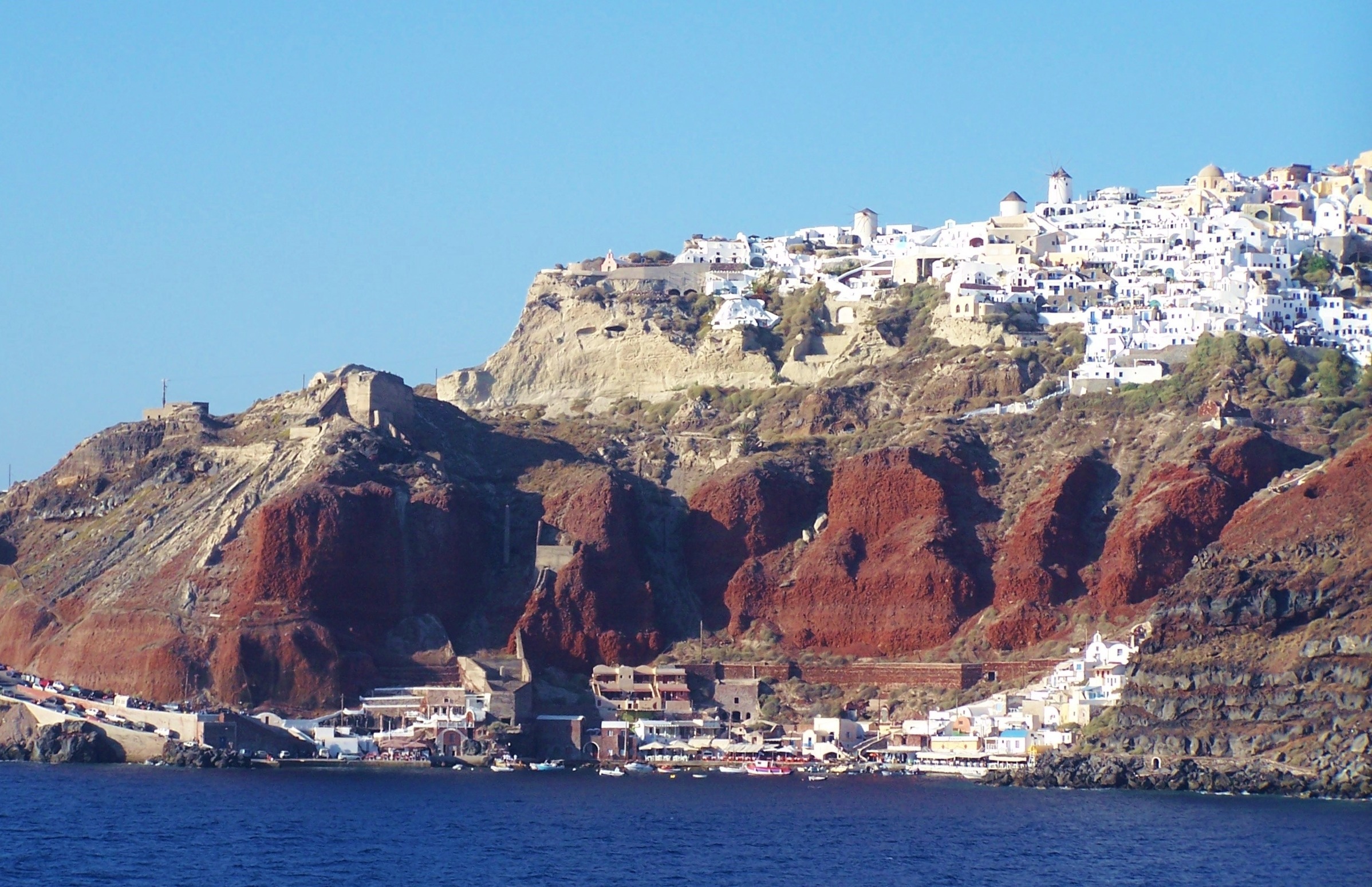 Oia is on the northern part of the island and similar to Thira with white cubed houses. Similar to Mykonos it has a windmill.