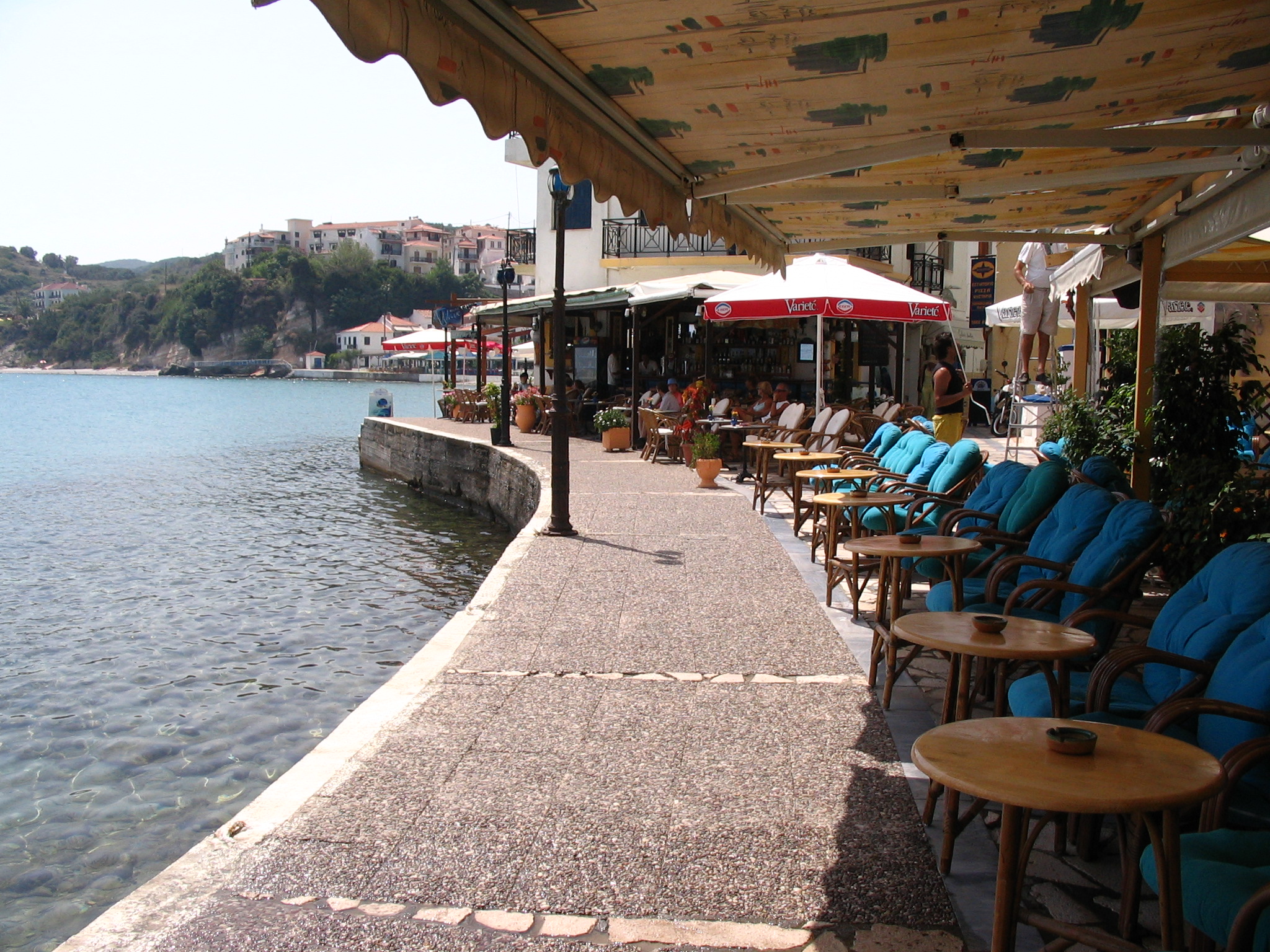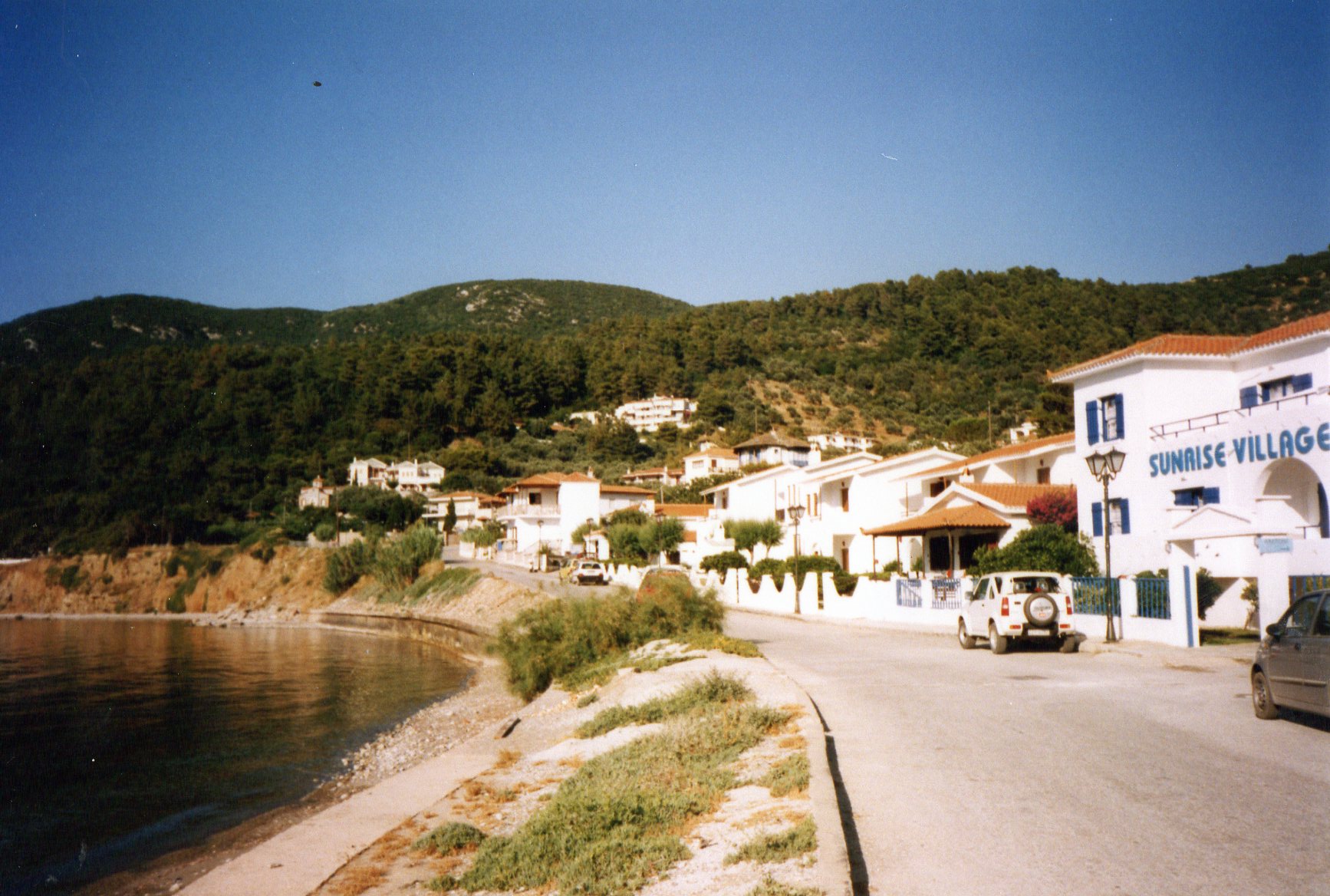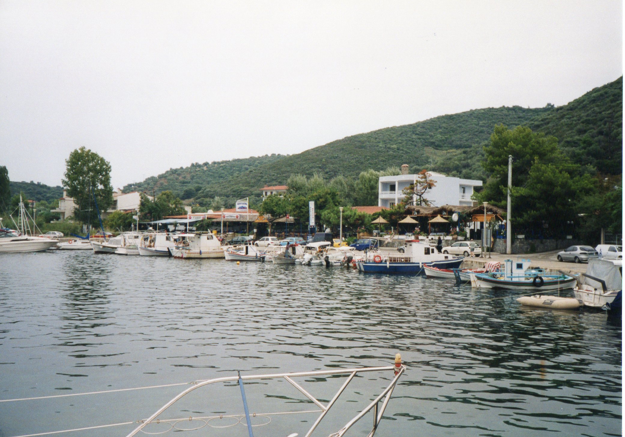 We stayed at Pilalidis Apartments in September 2002 in Pefkochori, which is the furthest south of the main Halkidiki villages. It is a quaint village of whitewashed houses amid citrus and olive groves, extending to a popular beach resort area on the Toroneos. It was the only time we ever went anywhere in September and it was cold and wet for part of the time, we even needed blankets at night!