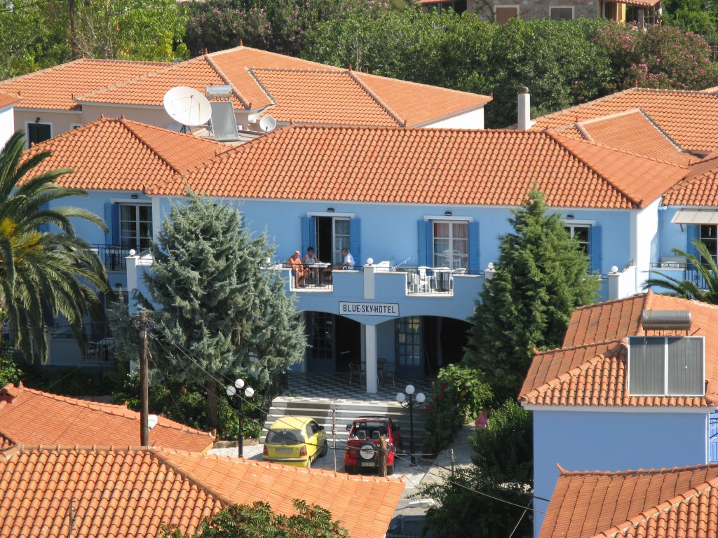 The Blue Sky hotel from the Panagia Glykofilousa.