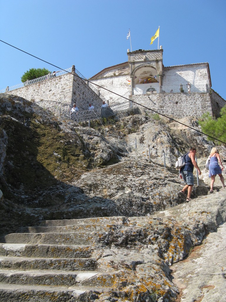 Overlooking the village of Petra is Panagia Glykofilousa, Church on the Rock. To get to the church there is s short 114 step climb, it’s great when the temperature is in the mid 30’s. We didn’t see an entrance for the less able members of the congregation.