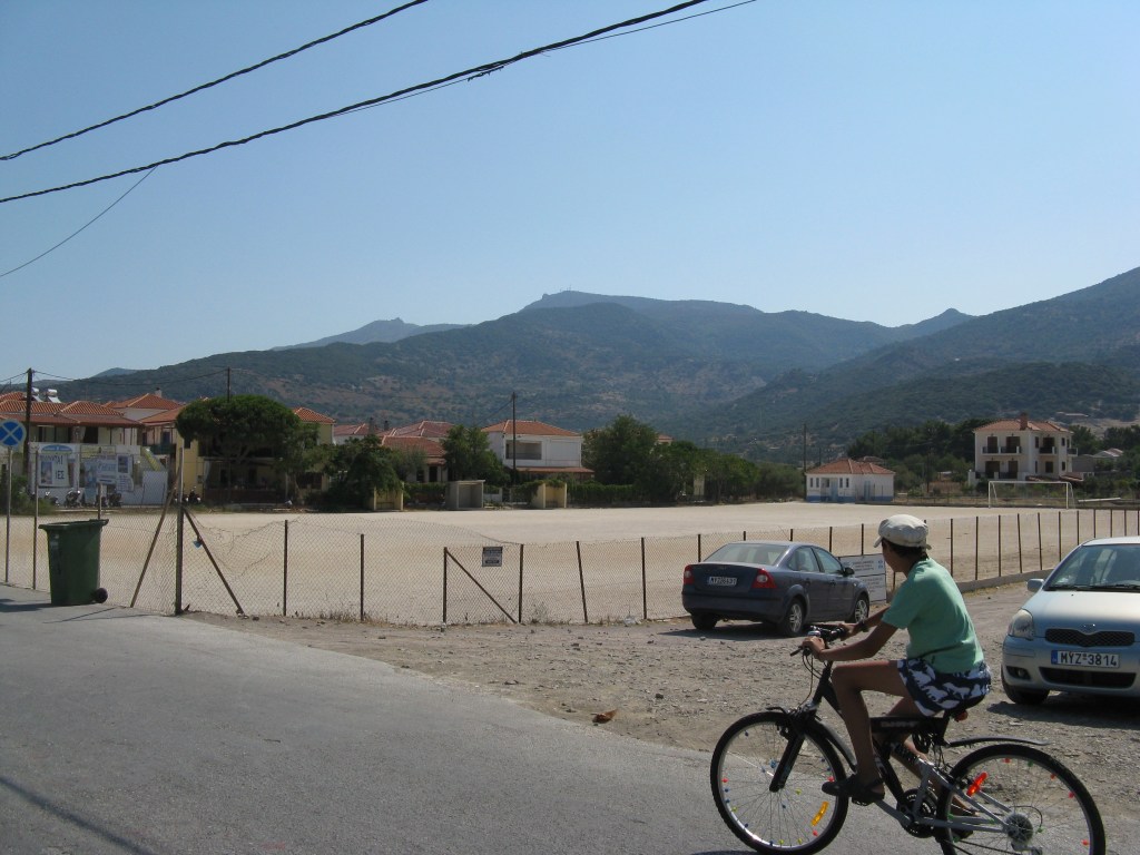 In our first visit I, Keith, was coerced in to playing football with a team of tourists playing against some locals. I stupidly expected to being playing on a grass or AstroTurf pitch, we had seen these on previous Greek trips. However the pitch turned out to be shale, not even nice soft sand. We took turns in playing in goal, which is my favoured position, and when I was playing right back I slipped and scraped the skin of my leg. My leg turned manky because of the heat so I had to take a trip to the local doctors who gave me some cream to put on it. I was told to keep this as dry as possible, not easy when the weather is so hot. This meant that I spent the rest of the holiday unable to go in the pool or the sea. We didn’t see much of Lesbos on that trip so we returned the following year on the understanding that I wasn’t allowed to play football in any form, even a kick about on the beach.