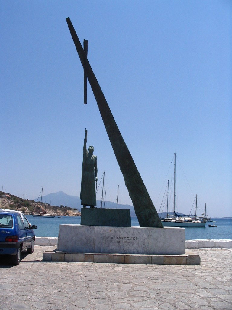 Philosopher from Samos Pythagoras. He even got his own statue.