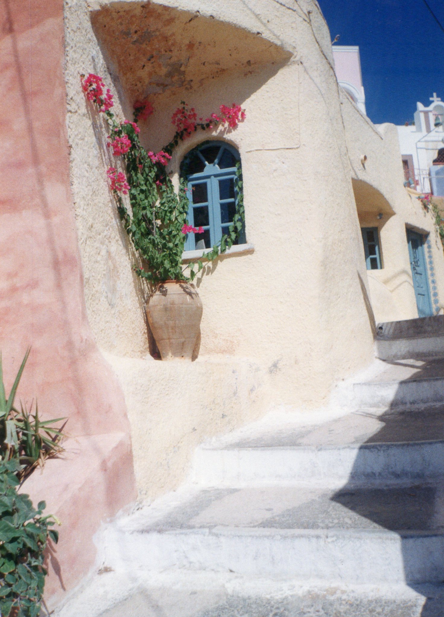Santorini is definitely not one of the places for people with walking difficulties. There are no roads just narrow stepped streets.