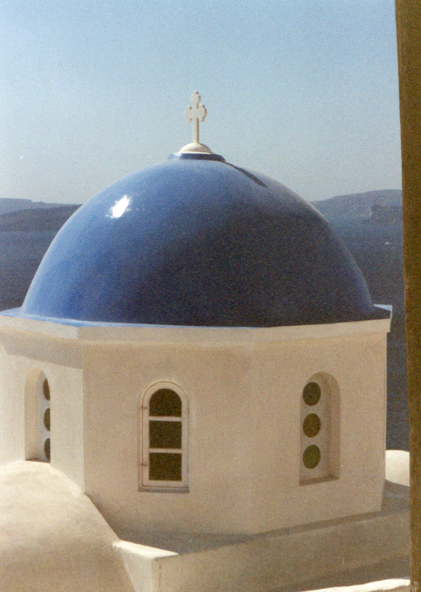 Santorini is probably the most attractive of all Greek islands and when you see pictures they always have a church with a blue roof. Although these are present all over the Greek islands most people will associate them with Santorini.