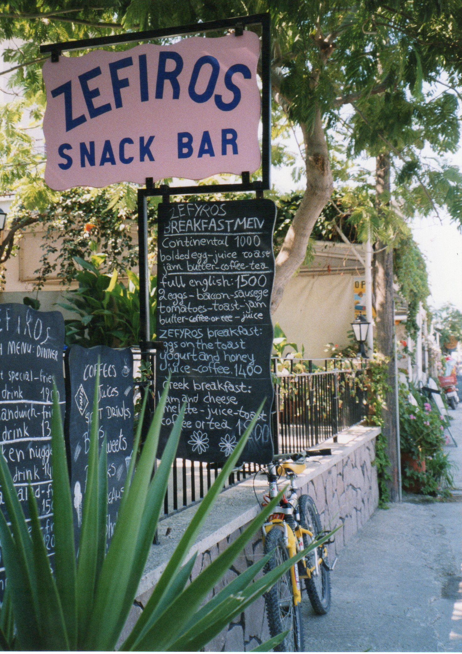 Travelled all the way from the UK on our very first trip together and so that we aren’t homesick there was the full English Breakfast to remind us of where we were just 24 hours before. The prices are in drachma prior to the adoption of the euro, so they are not as expensive as they seem.