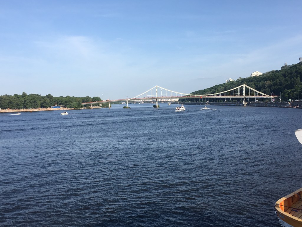 Kiev is the capital and largest city of Ukraine with a population of 2.6 million souls. The heart of the city is beautifully situated on a series of wooded hills that rise steeply from the west (right) bank of the Dnieper which flows lazily in a broad bed, filled with ribbon-like islands.