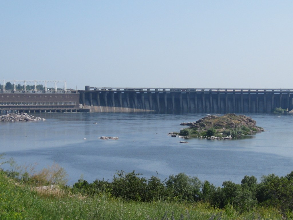 The Dnieper Hydroelectric Station dam is an important crossing of the Dnieper. It has a water lock that allows navigation along the river and around the dam. There is also a bridge over the lock that carries a highway that connects the banks of the Dnieper.