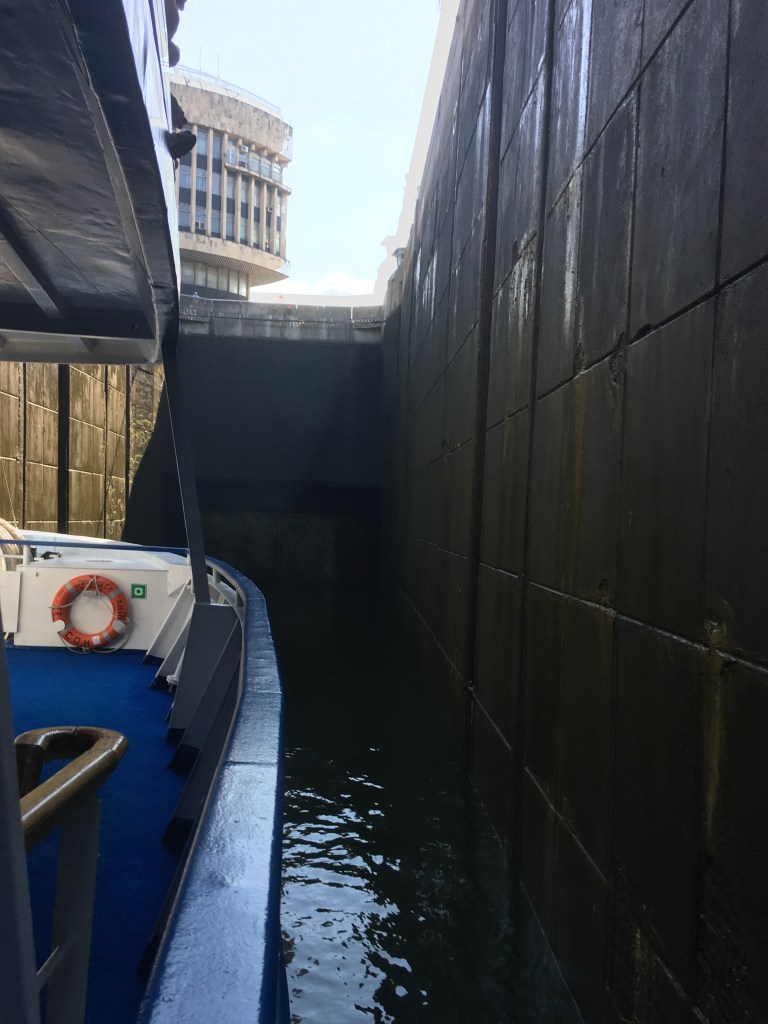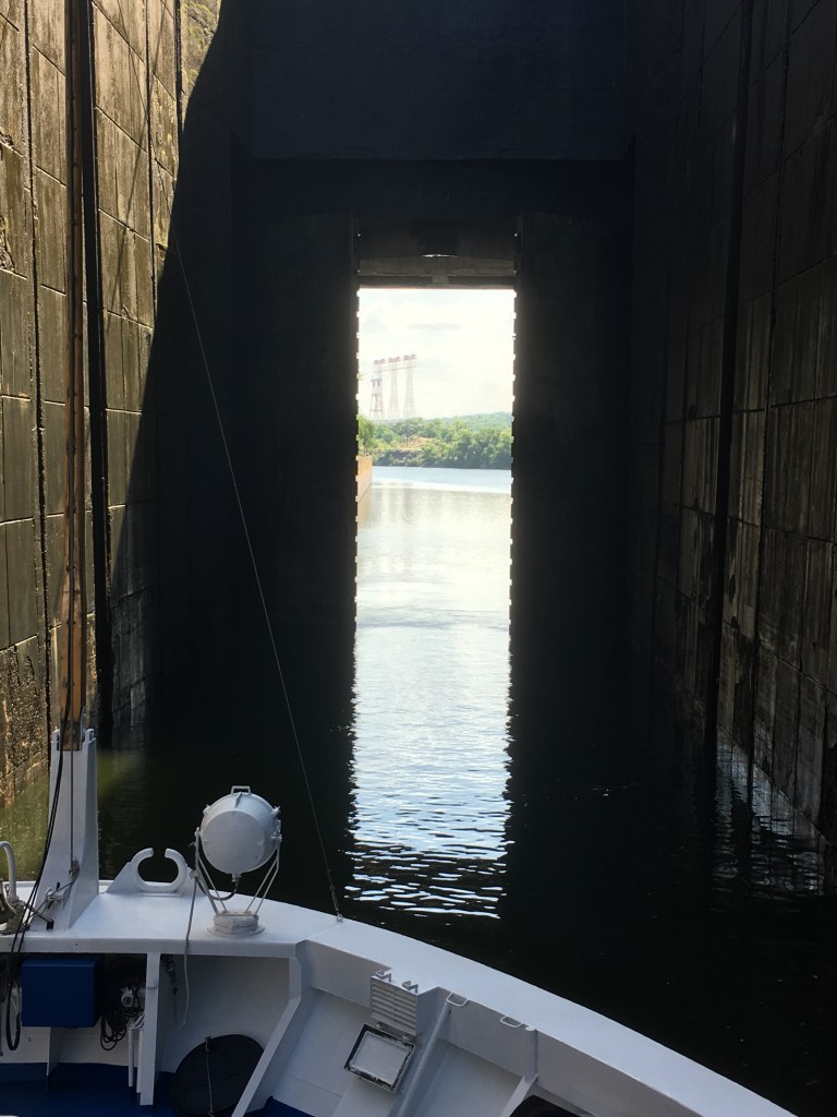 This is the deepest lock on the Dneiper river at 36 metres, 118 feet.