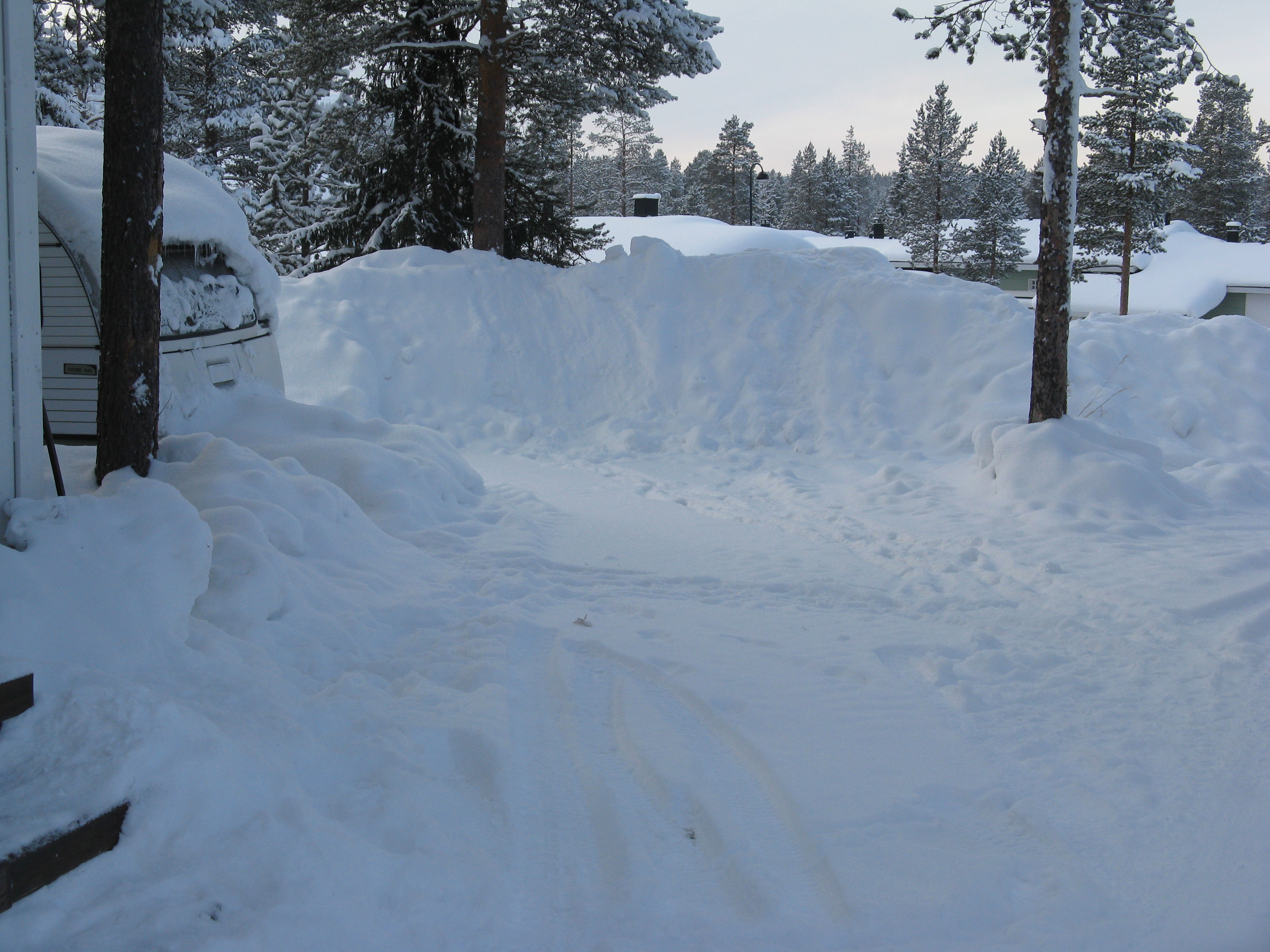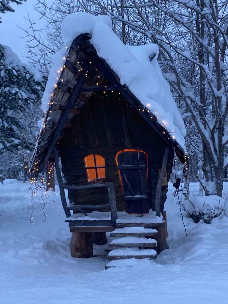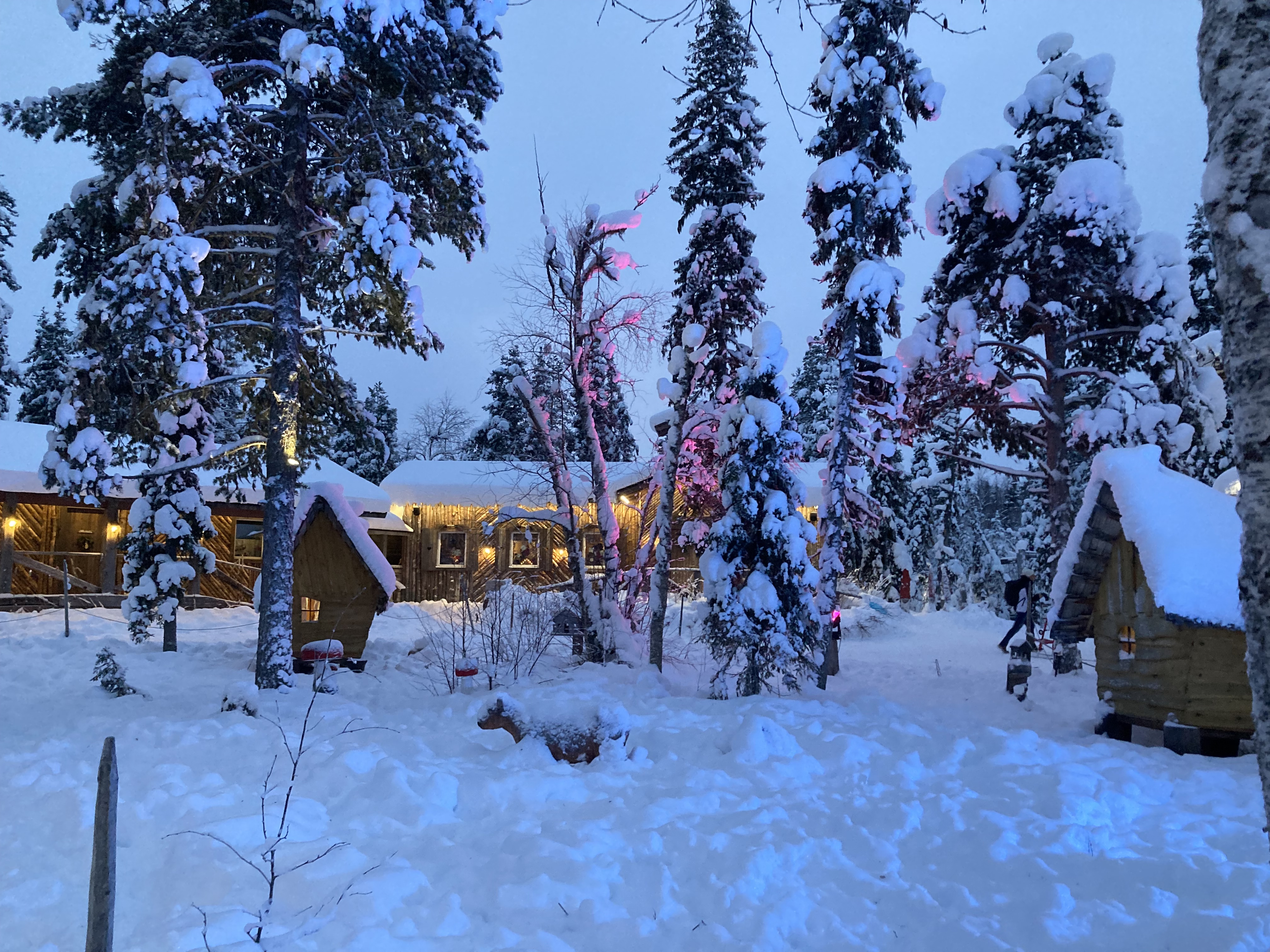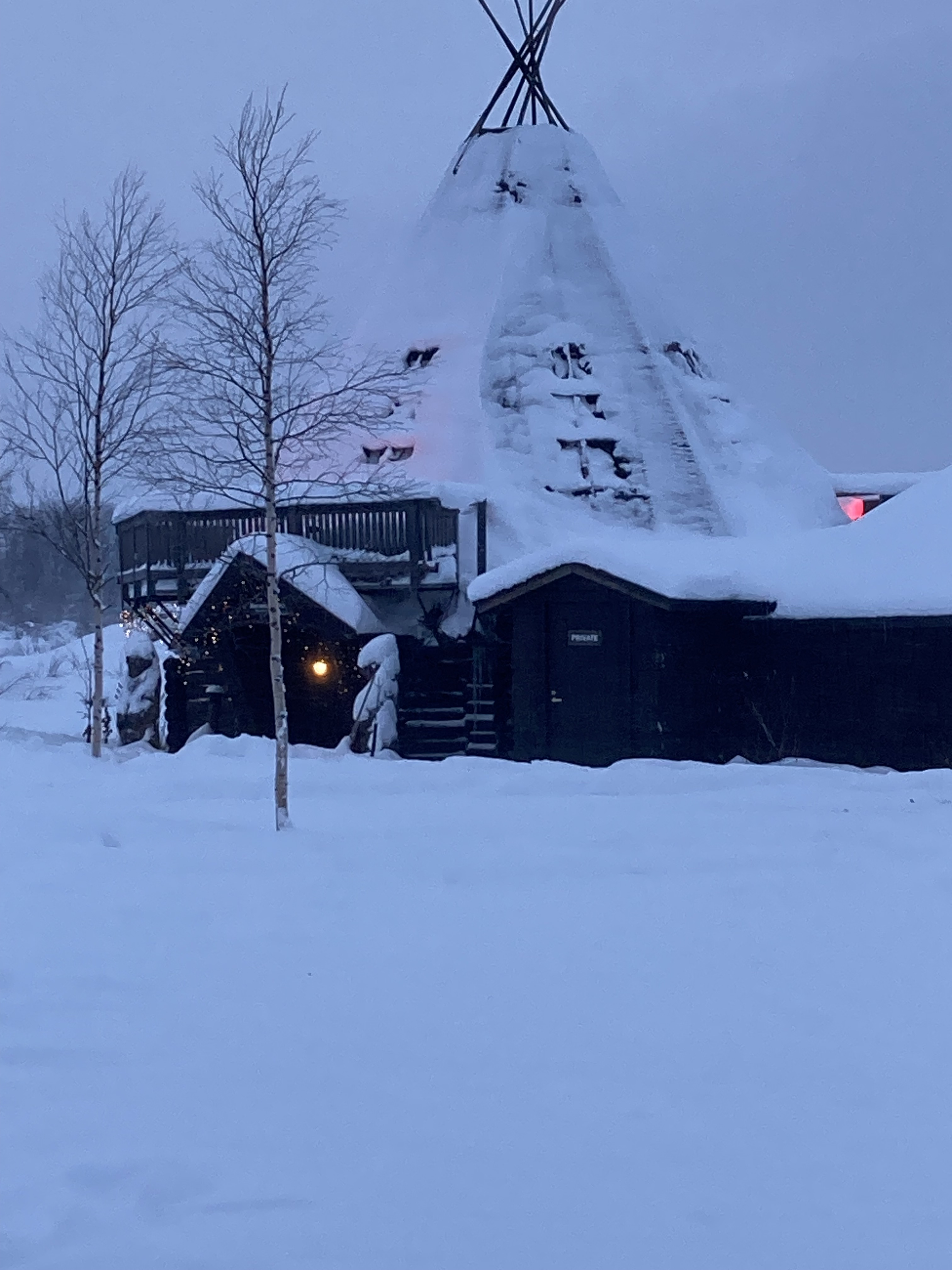 Instead of a cosy cabin with a log fire, this was one of the alternatives. It was probably very cheap, but we’re not sure that a caravan in -20+ was a good idea for us Brits.
