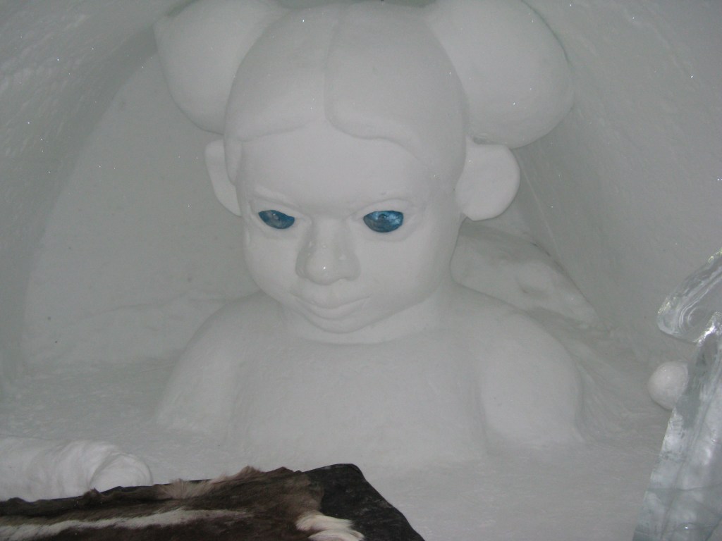One of the amazing sculptures solely from ice, apart from the glass eyes. There are so many beautiful sculptures unfortunately we cannot include them all.