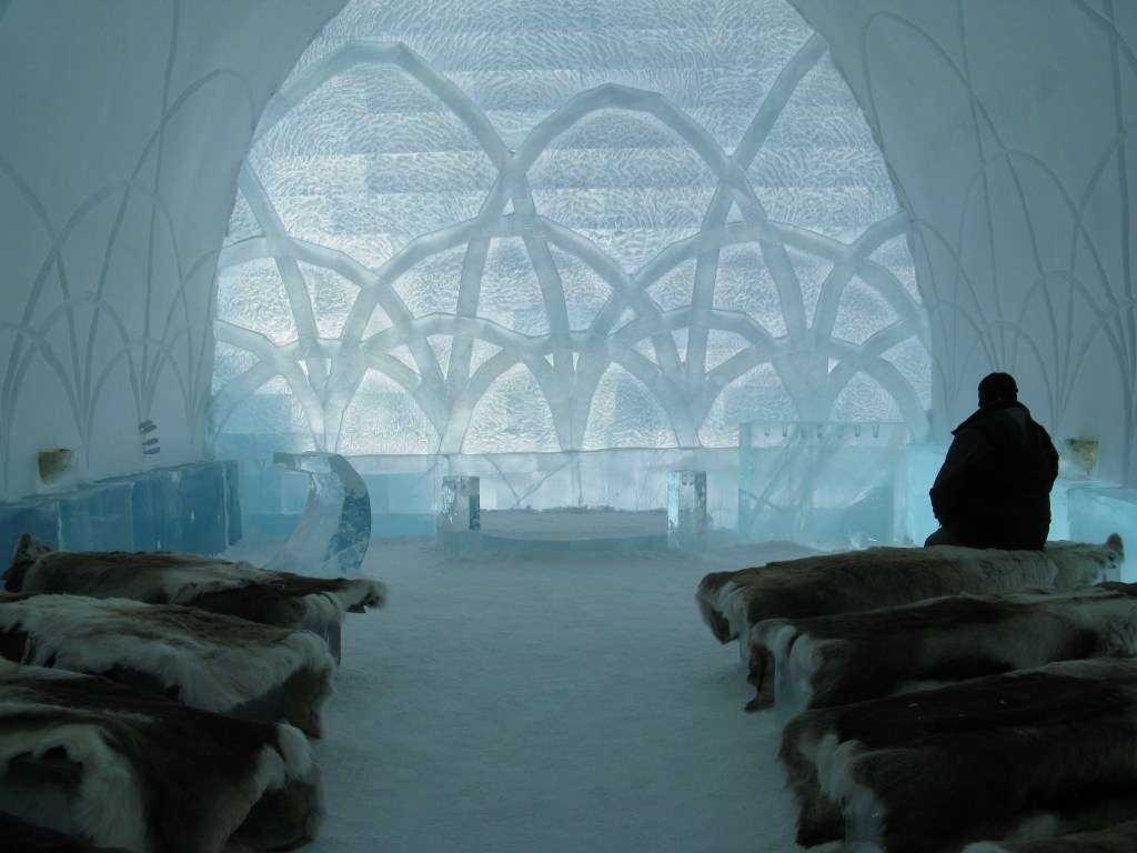 This is the original ICEHOTEL which was founded in 1989 in the village of Jukkasjärvi, Sweden. When the winter suites have melted back into the river in the spring, a part of the hotel still stands. This is then rebuilt each year as a hotel and art exhibition. This ever-changing art is created in a new guise every winter, completely made out of natural ice from Torne River, one of Sweden’s national Rivers and last untouched waters.