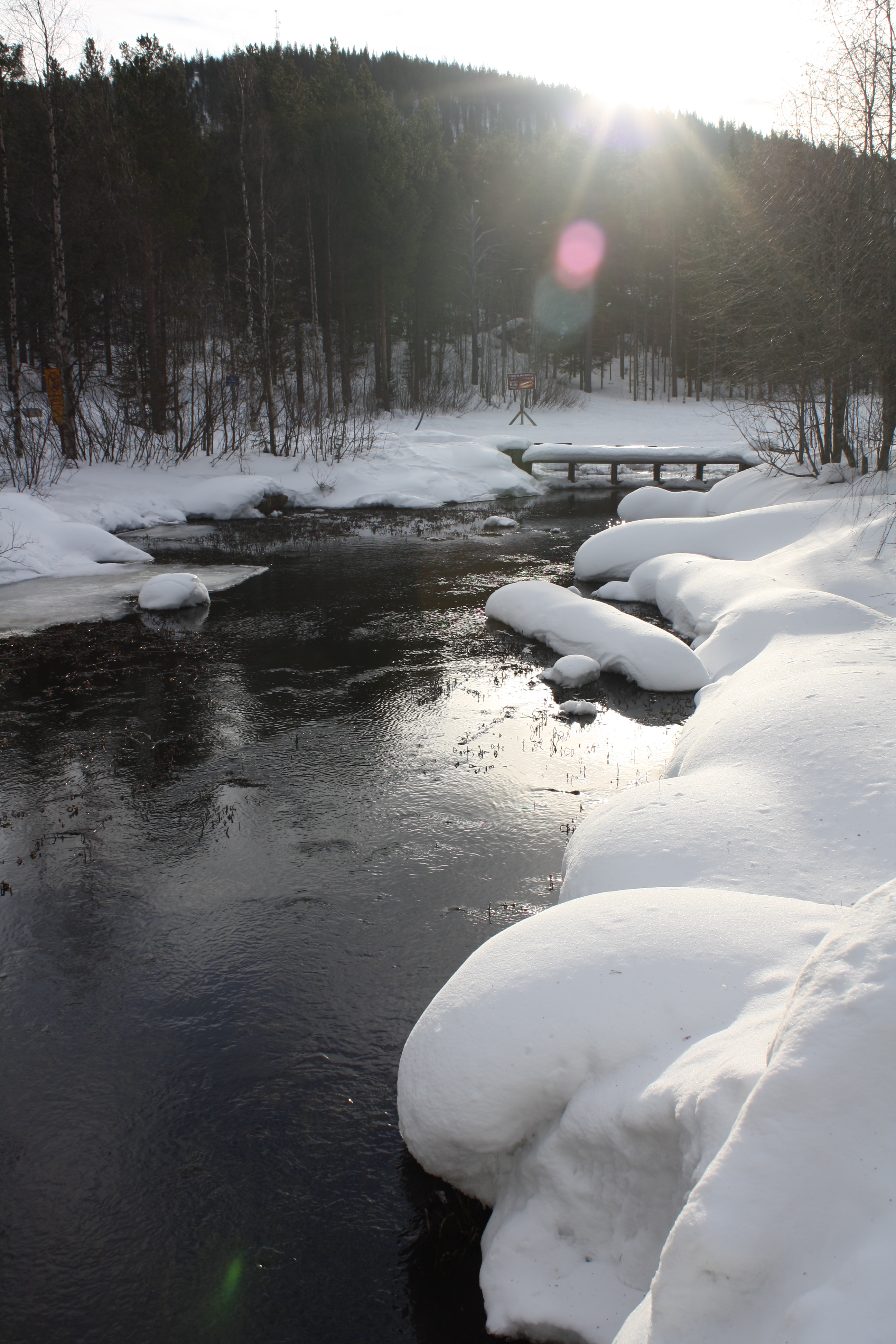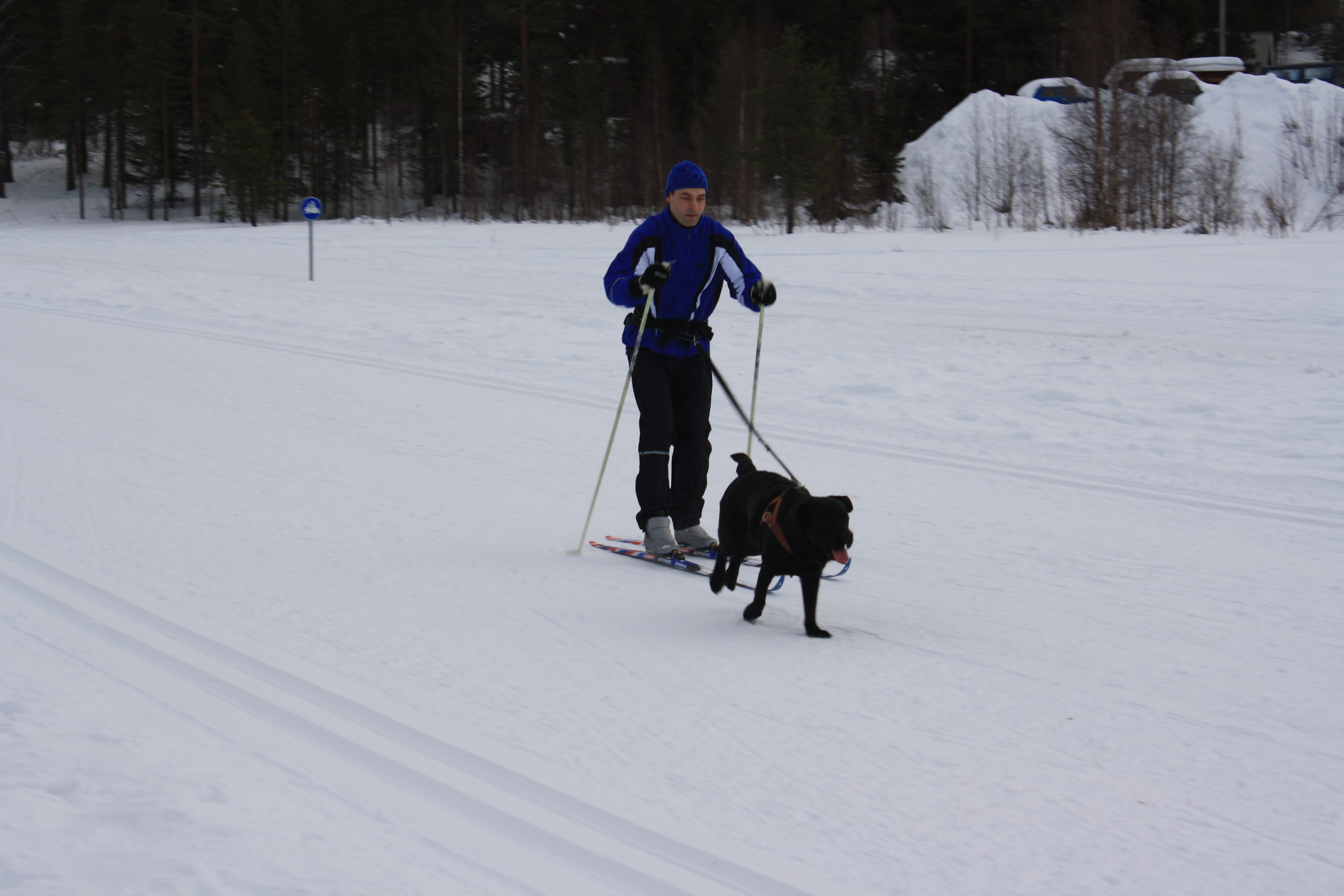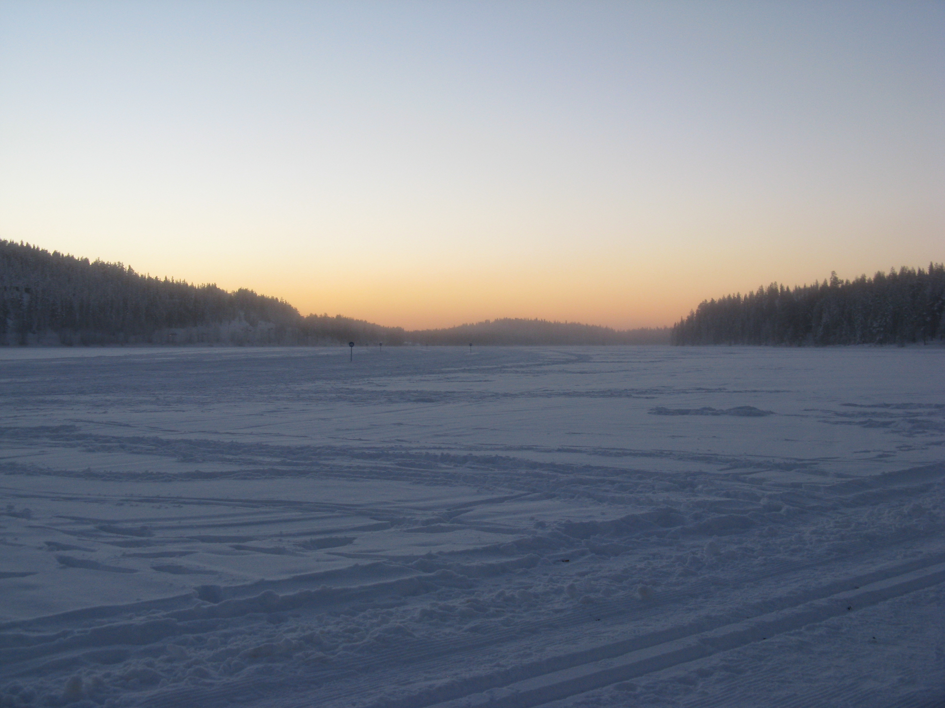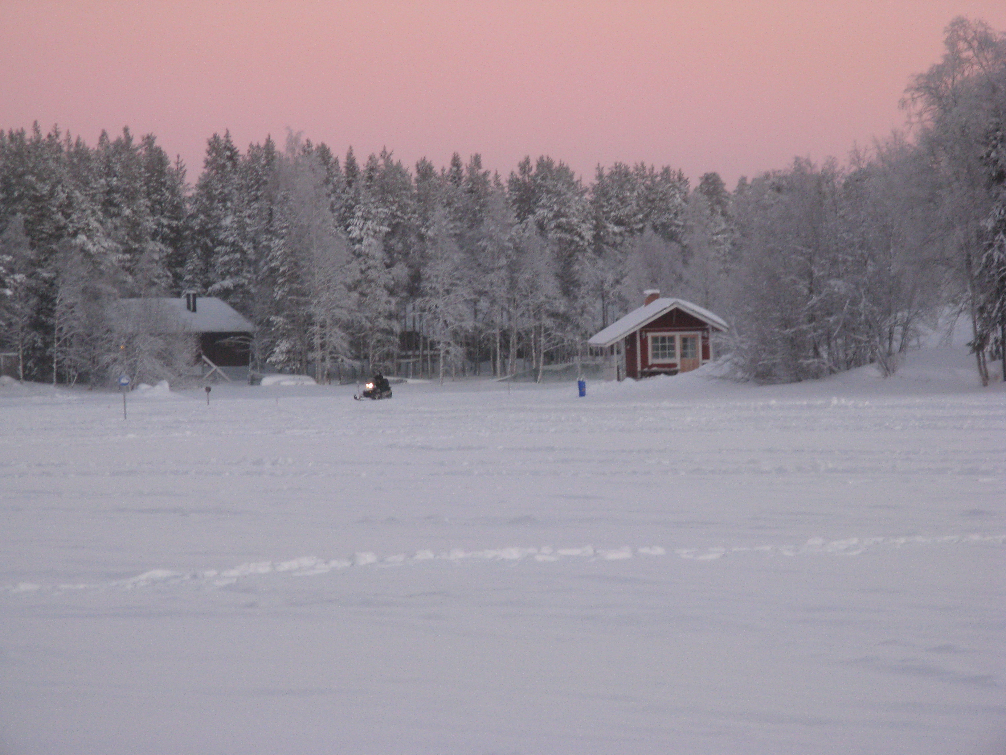 It’s hard to see from the photograph but across the lakes and in the woods there are snowmobile tracks which have the same rules as the road. In the picture below the speed limit is 60kph. We never managed to get above 40kph. As the same laws apply to you have to carry your driving licence at all times.