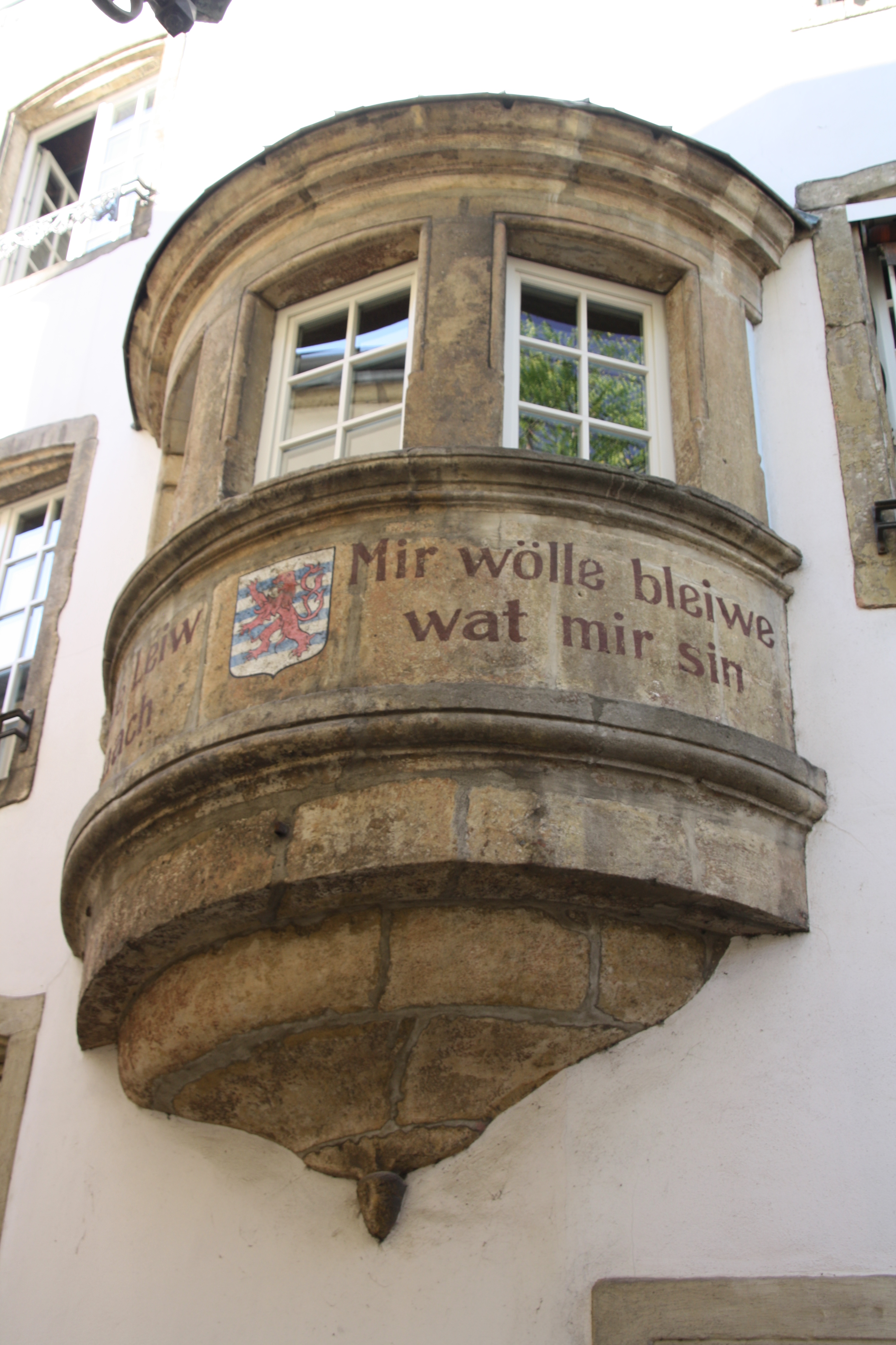 The beautiful old building called am Turchen (“the Turret”) now houses Ilôt Gastronomique (rue de l’Eau), a vertical mall housing half a dozen restaurants, ranging from good to great. The national motto, on the wall facing rue de la Loge, translates as: “We want to remain what we are.”