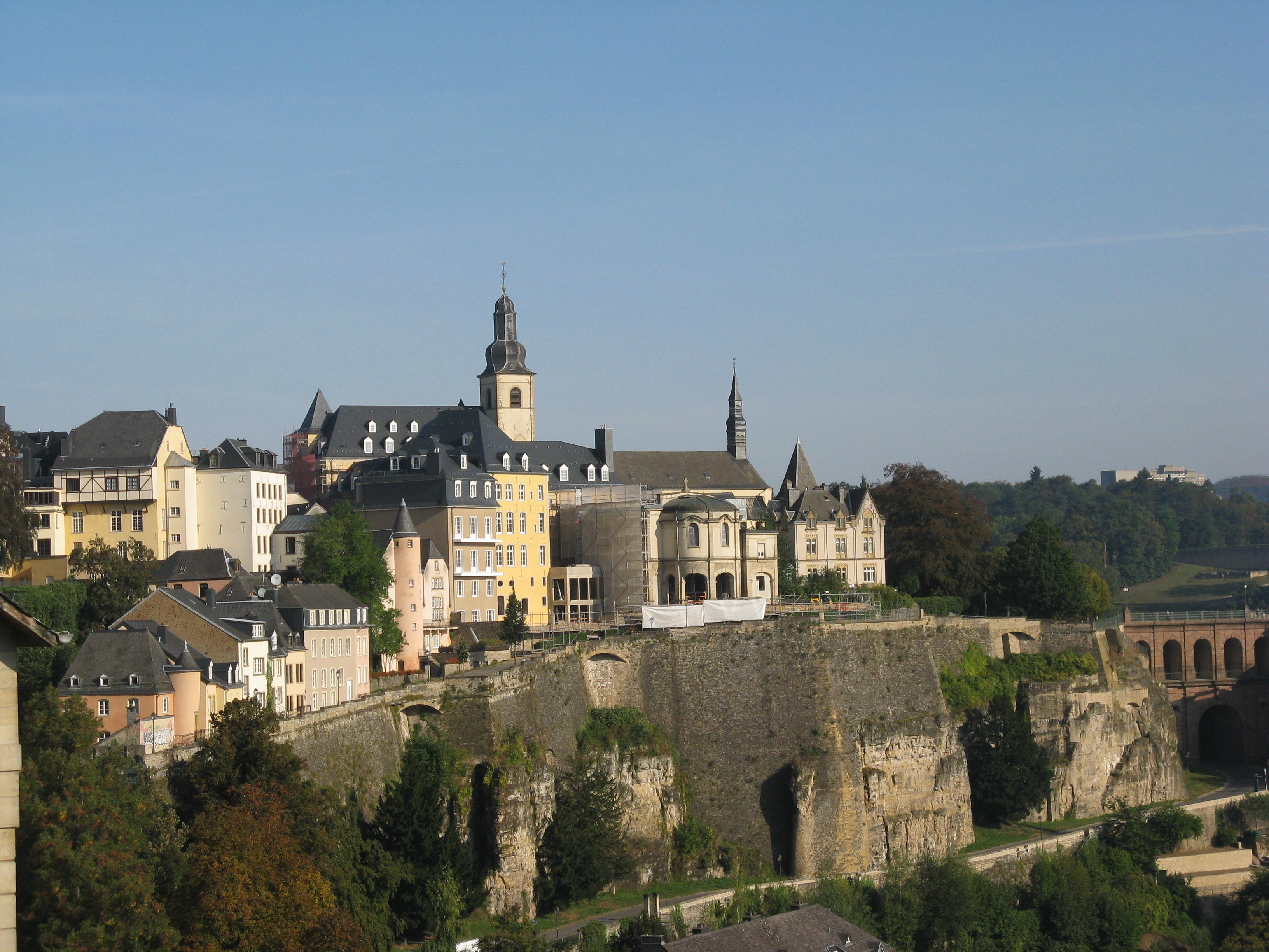 A church on this site (rue Sigefroi) was consecrated in 987. That building was destroyed by bombardment (Luxembourg was often bombarded) in 1684, then beautifully rebuilt in the Gothic style.