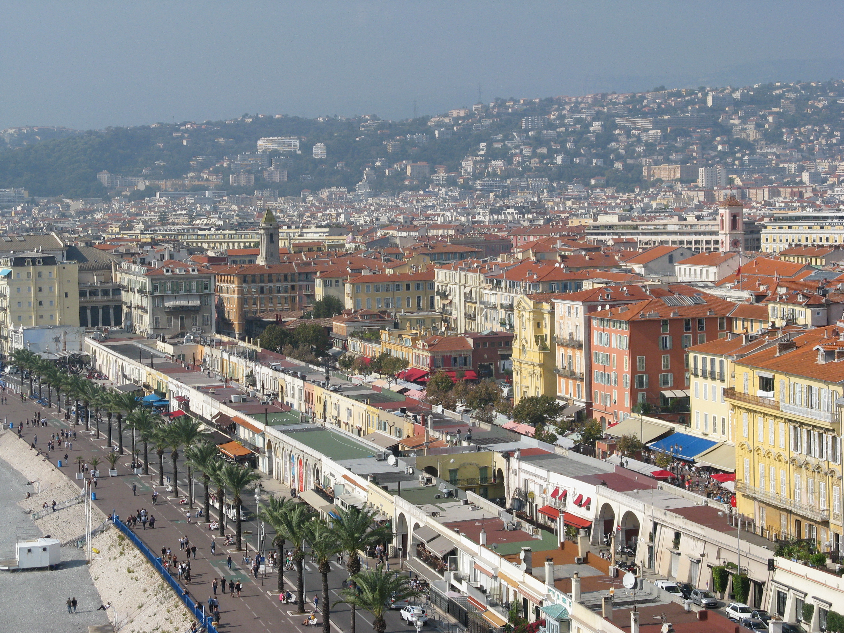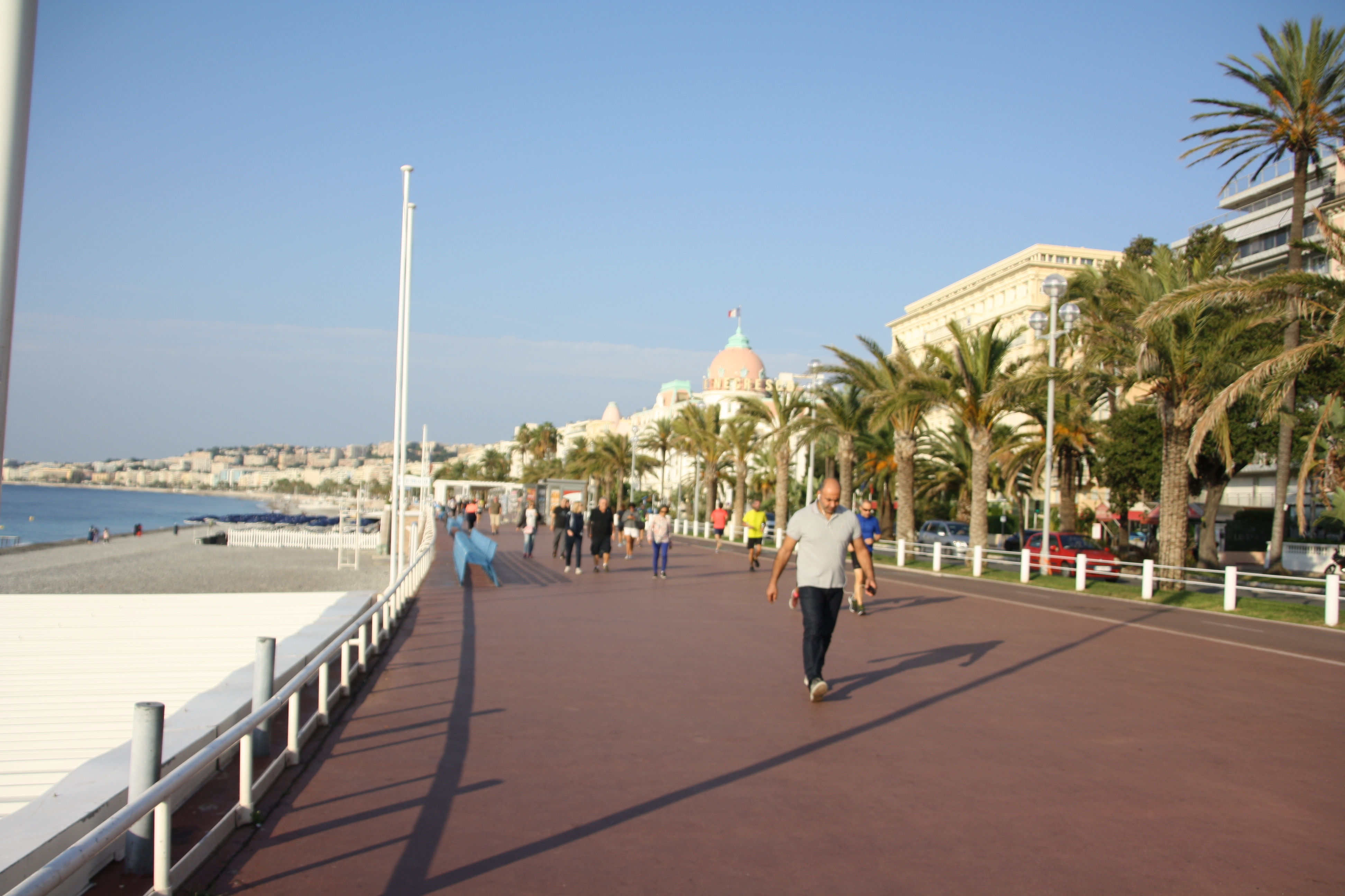 The Promenade des Anglais translated to Walkway of the English is a promenade along the Mediterranean. It extends from the airport on the west to the Quai des États-Unis (United States Quay) on the east, a distance of approximately 7 km.