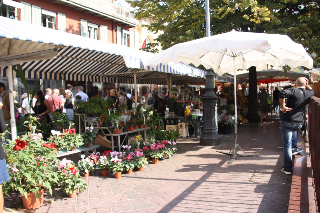 In the shade of pretty striped awnings is the flower market which is held every day, from 6 am to 5.30 pm except Mondays, Sunday afternoons and public holidays.