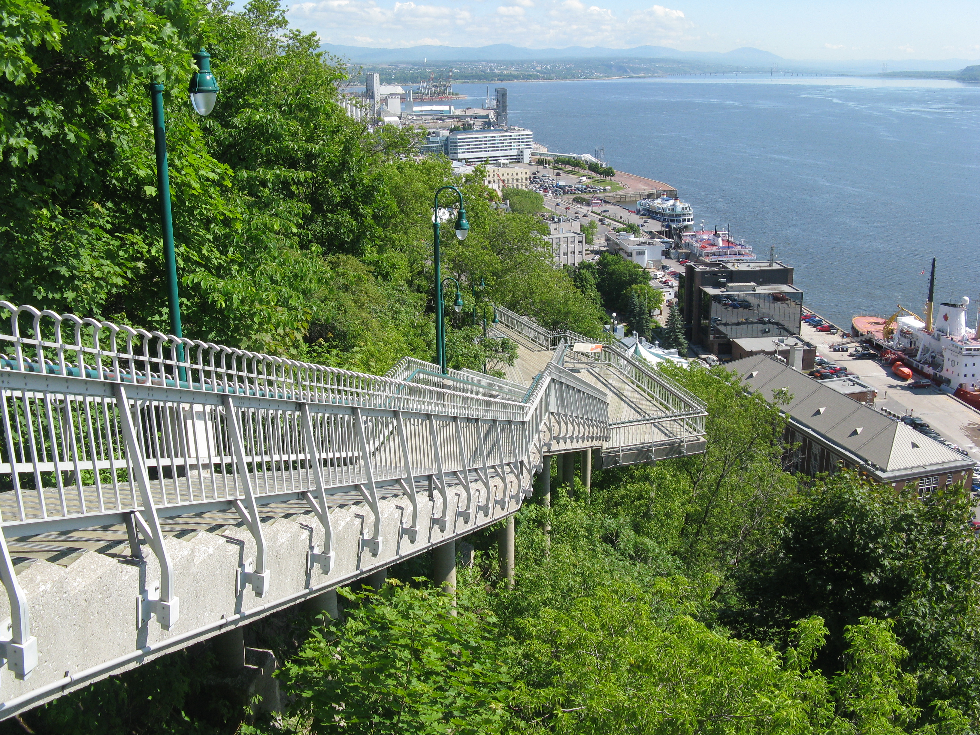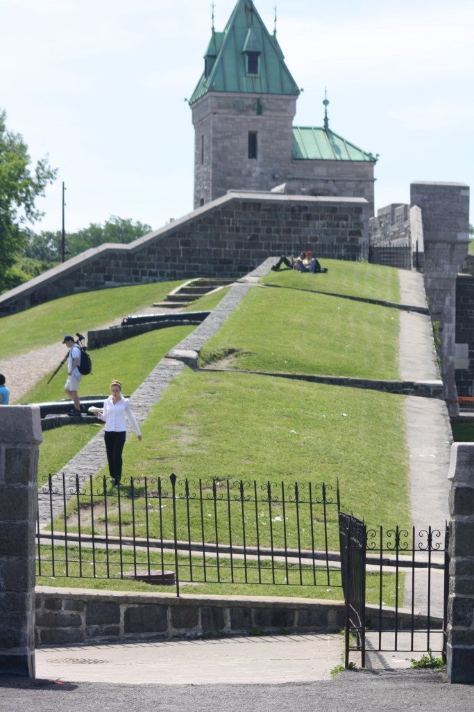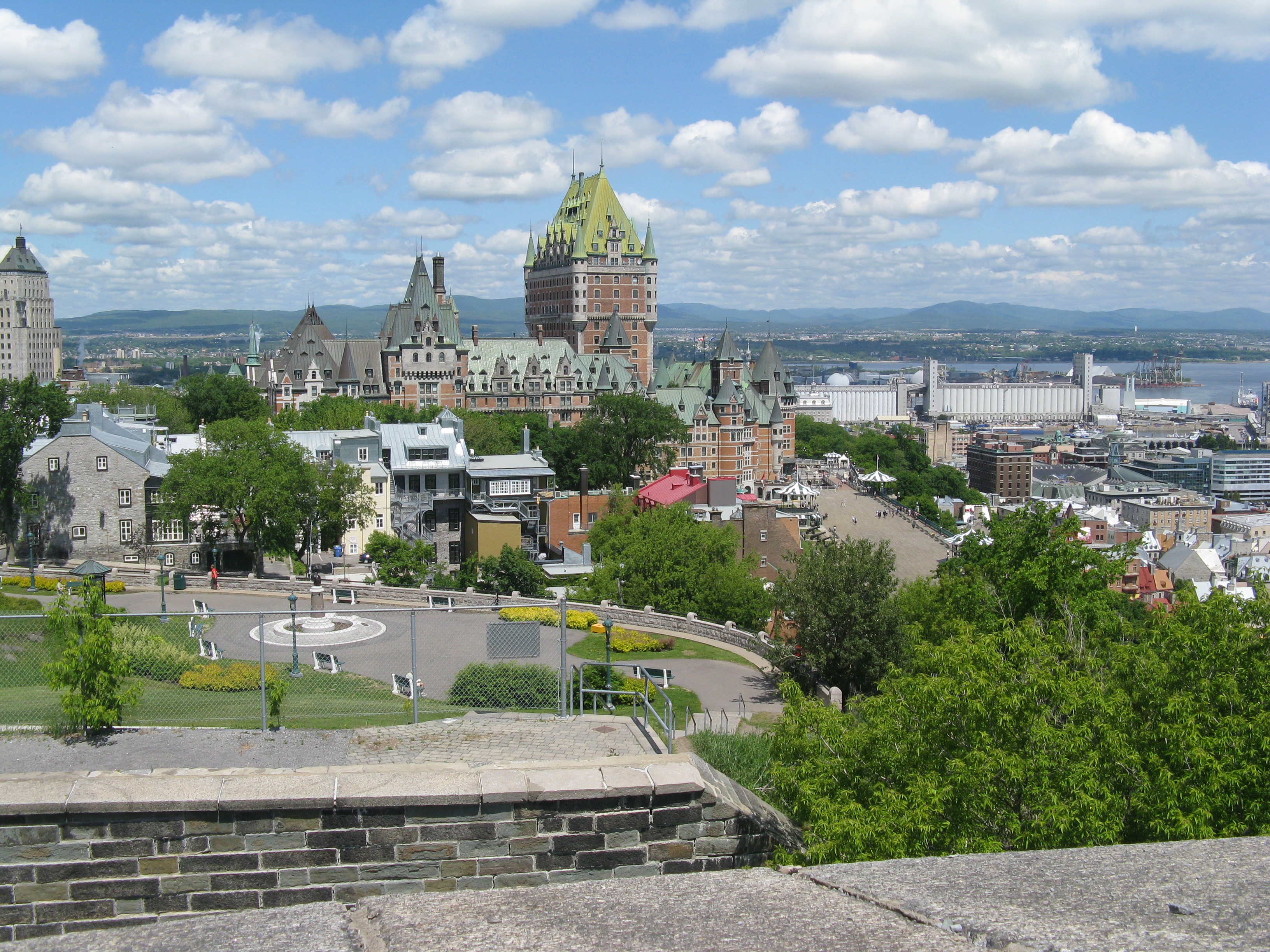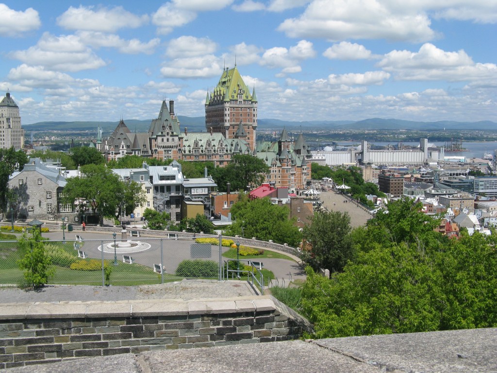 Looking out over the city walls to the Saint Lawrence river and beyond.