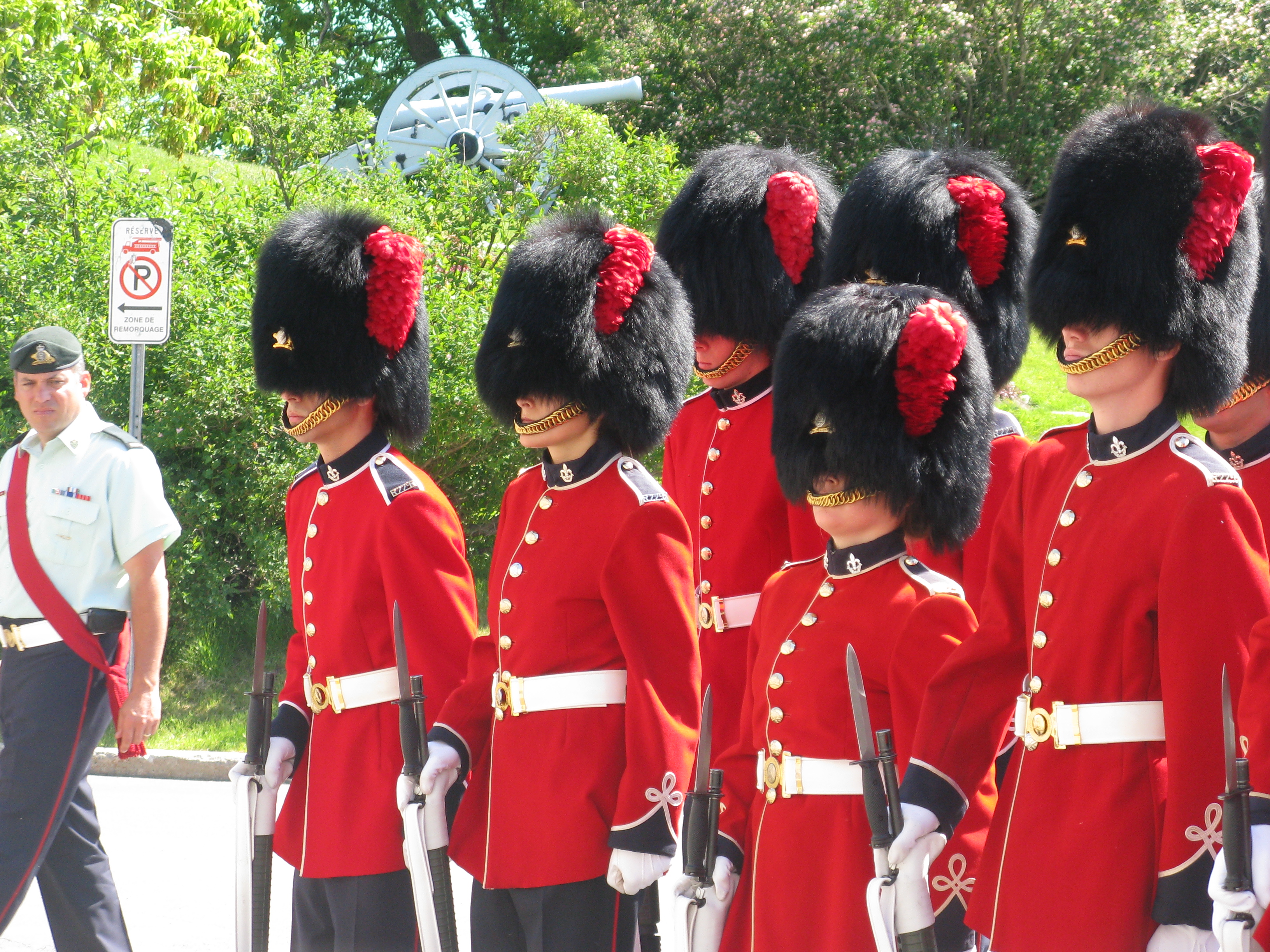 Quebec city is in the only French speaking province in Canada and as you will see from the pictures below the city is very French. This is one of the oddities that we found. The chap on the left is regaled in his Gallic outfit as though he was walking the streets of Paris, whereas the rest look as though they are on duty at Buckingham palace.