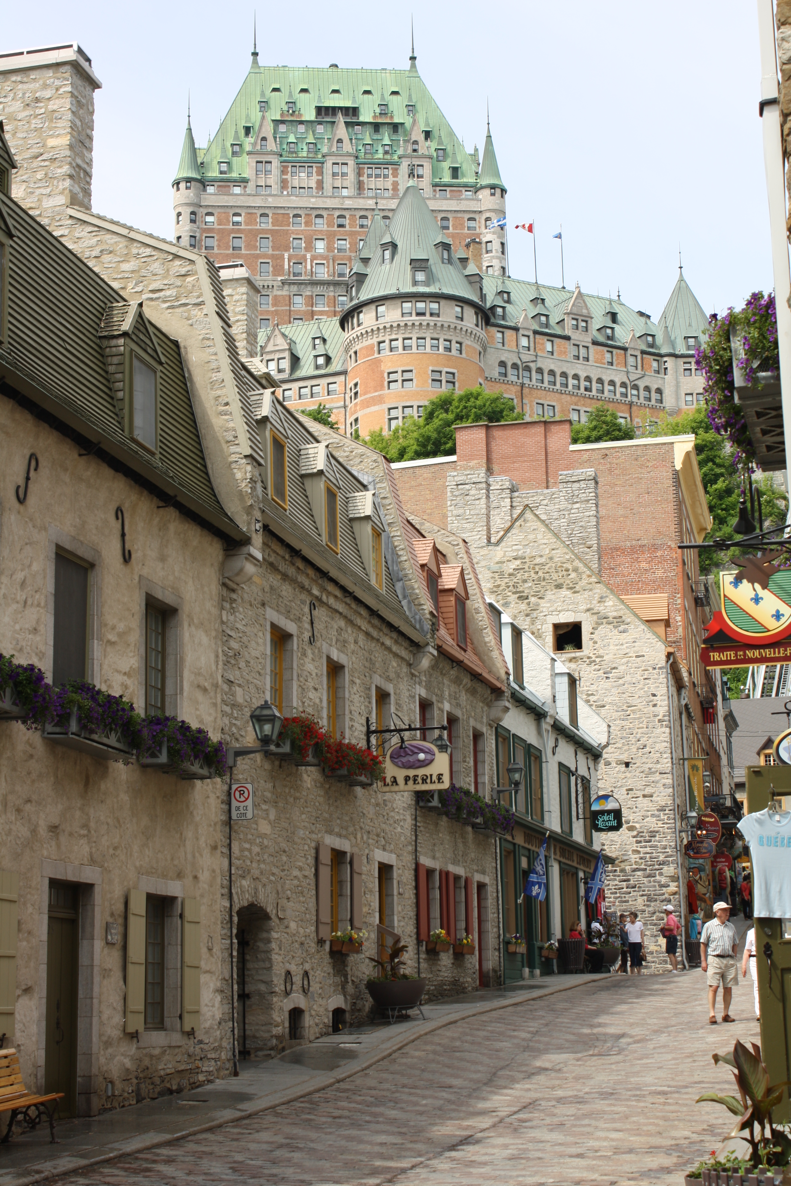 Looking behind once you have arrived from the upper town on the funicular you can see the magnificent splendour of the Fairmont Le Château Frontenac.