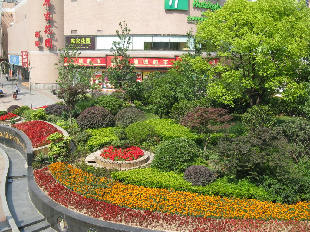 Shanghai is a city with a lot of buildings and small gardens like this one which was outside our hotel.