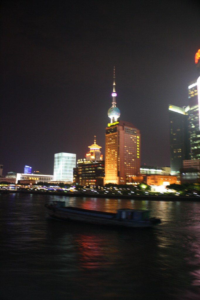 There is no better way to see the juxtaposition of eras in Shanghai than taking a cruise on the Huangpu River. At night, the dazzling colours and lights from Pudong shine bright onto the more modest twilight of the Bund.