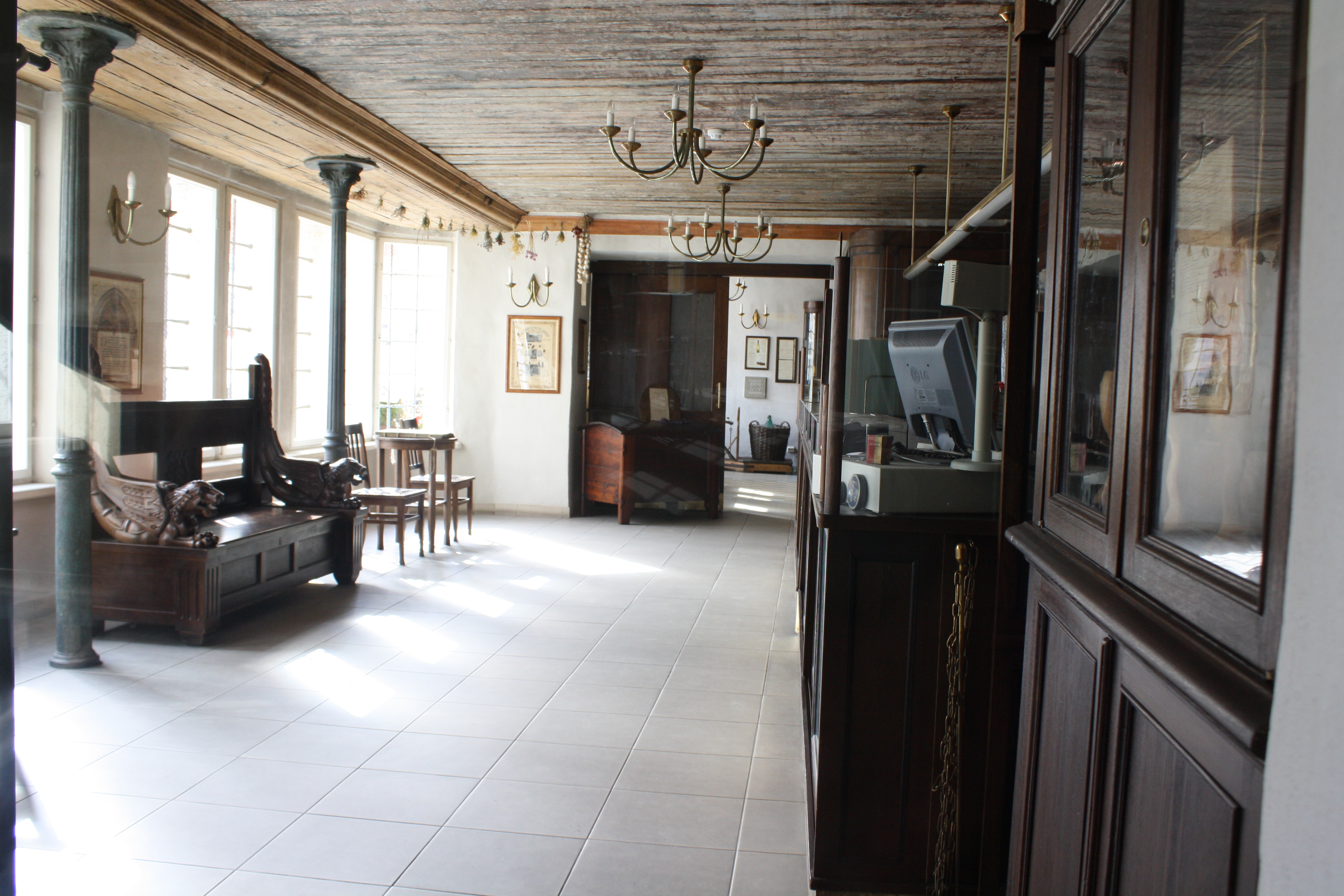 Near the modern pharmacy on the first floor there is a small museum displaying old medical instruments, historical chemist tools and other curiosities. Set in wall, the museum also contains a large stone Coat of arms of the Burchart family dating from 1635. It shows a griffin with a crown and underneath a rose between lilies.