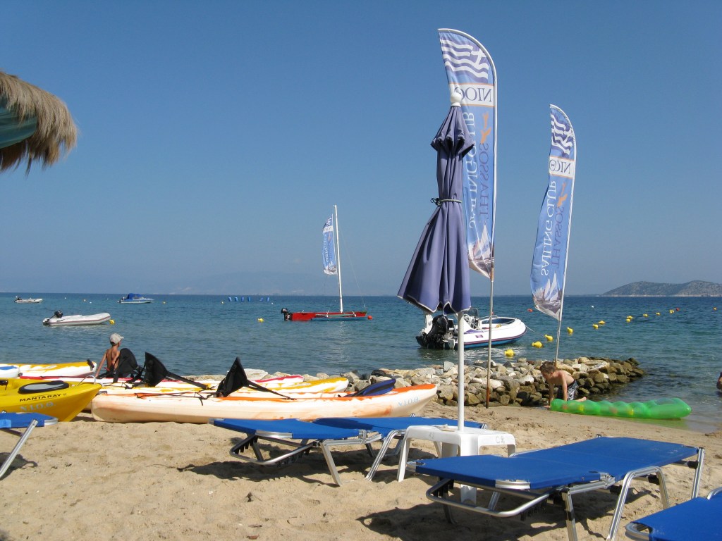 On a different scale is Papias beach which is very small intermate. There are some small bars which allow free use of the sun beds and parasols provided you buy a drink. This is only a short walk from the studios which is particularly great if you are in to watersports.