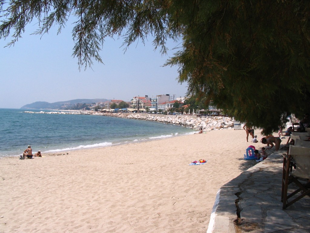 Yep that it’s name, very dynamic in beach naming are the Greeks . This photogenic beach is on the east coast. Many consider the huge, sweeping bay here to be the best on the island and the pine-clad hills backing onto it only add to the picture-postcard scene. The beach is a Blue Flag winner that has 3 kilometres of soft golden sands. The beach shelves gently into clear shallow water which is great for paddling.