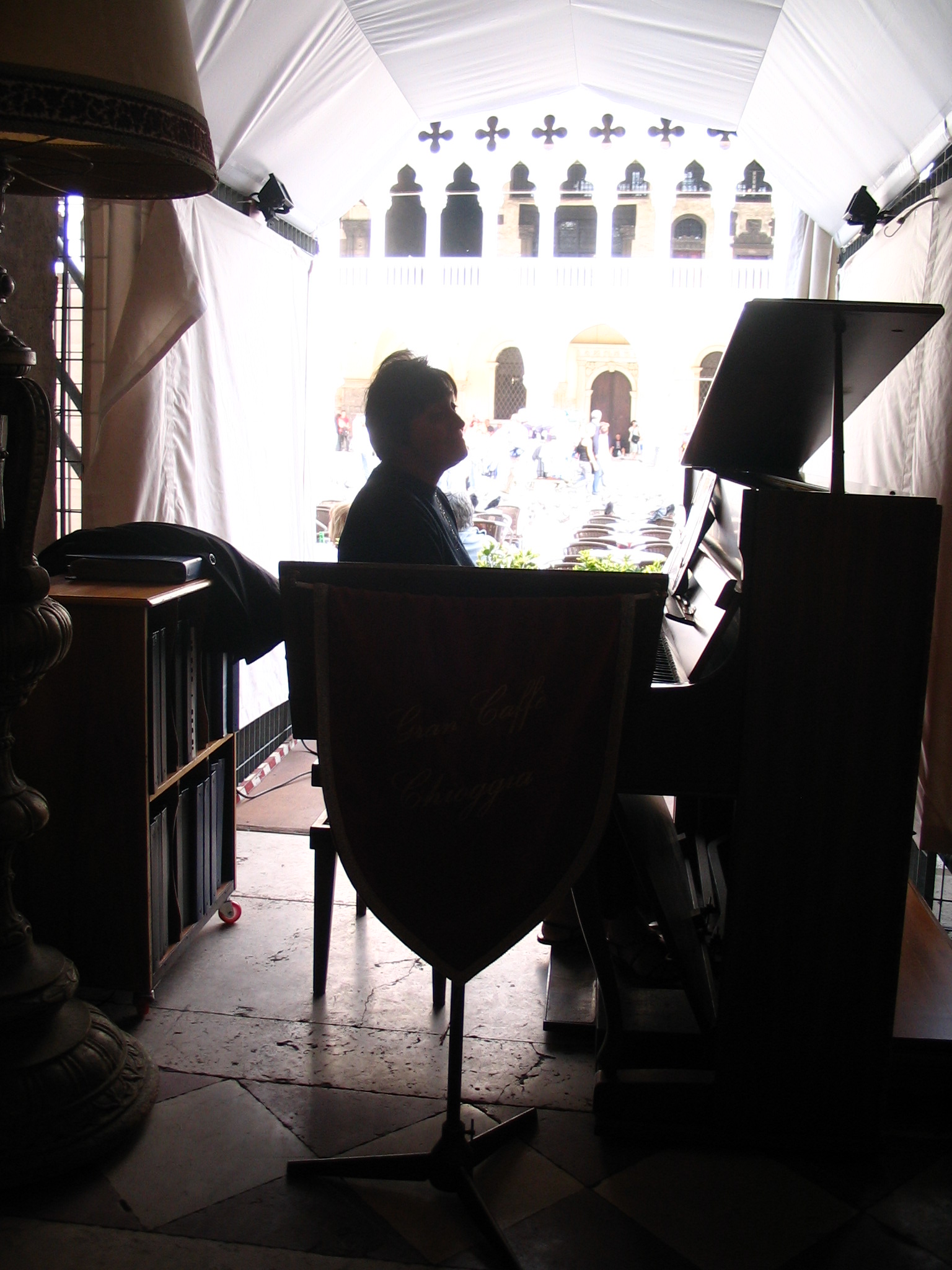 Pianist playing a Piano in a café on St Mark’s Square, if you want a coffee whilst you listening expect to pay nearly £20.00 and that was in August 2007.