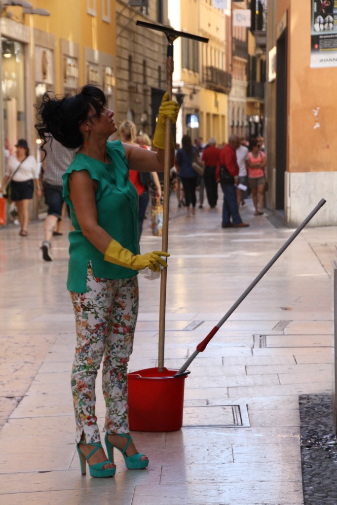 In Italy even the window cleaner has style, don’t fancy climbing a ladder in those shoes.