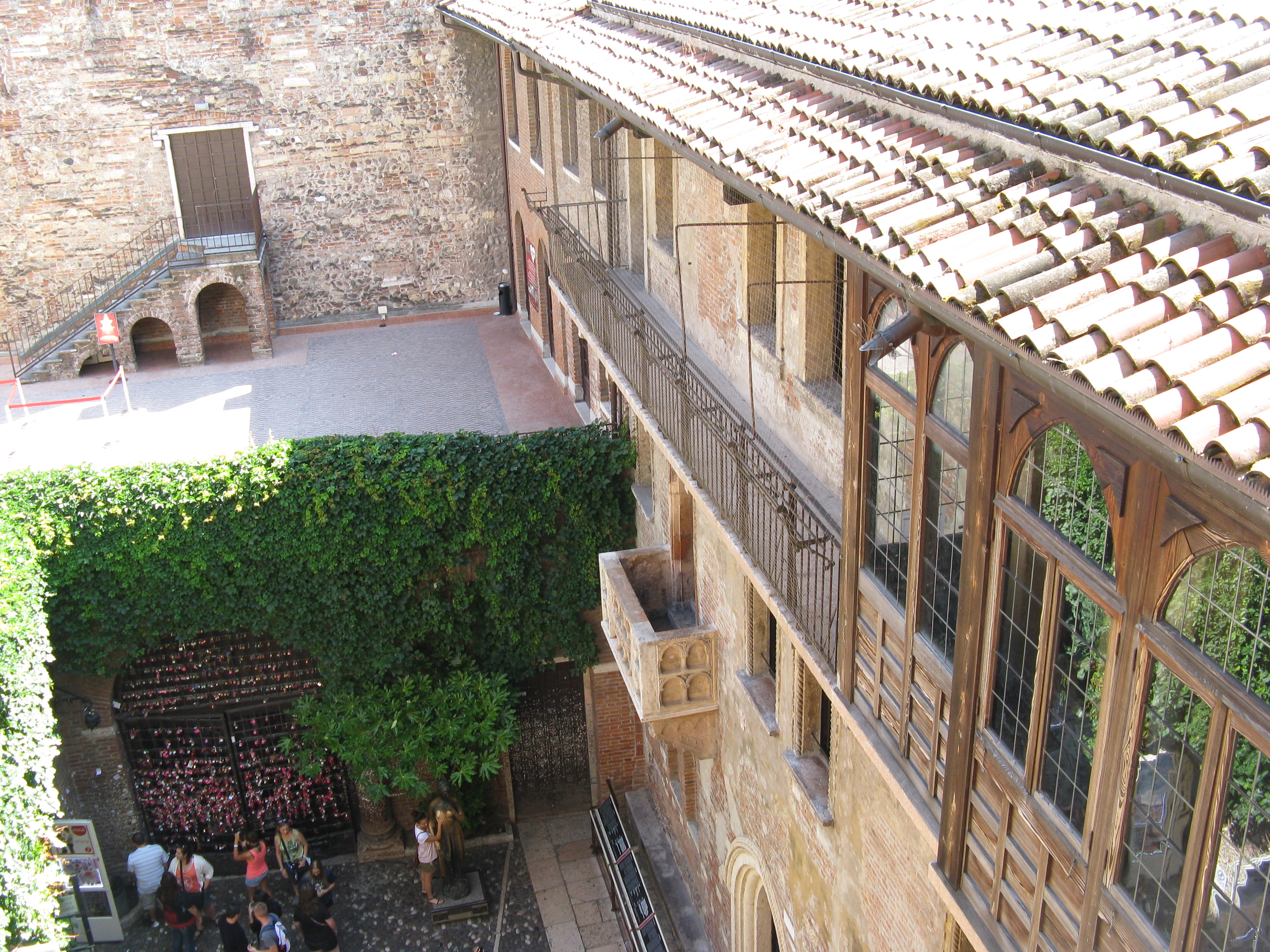 This is the most visited house in Verona, Casa di Guileta, and is the house of Juliet from Shakespeare’s Romeo and Juliet. Although Shakespeare never visited Verona, and Romeo and Juliet are fictional figures, this house, with its stone balcony, became a symbol of the world-famous love story.