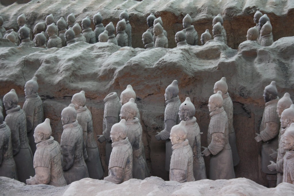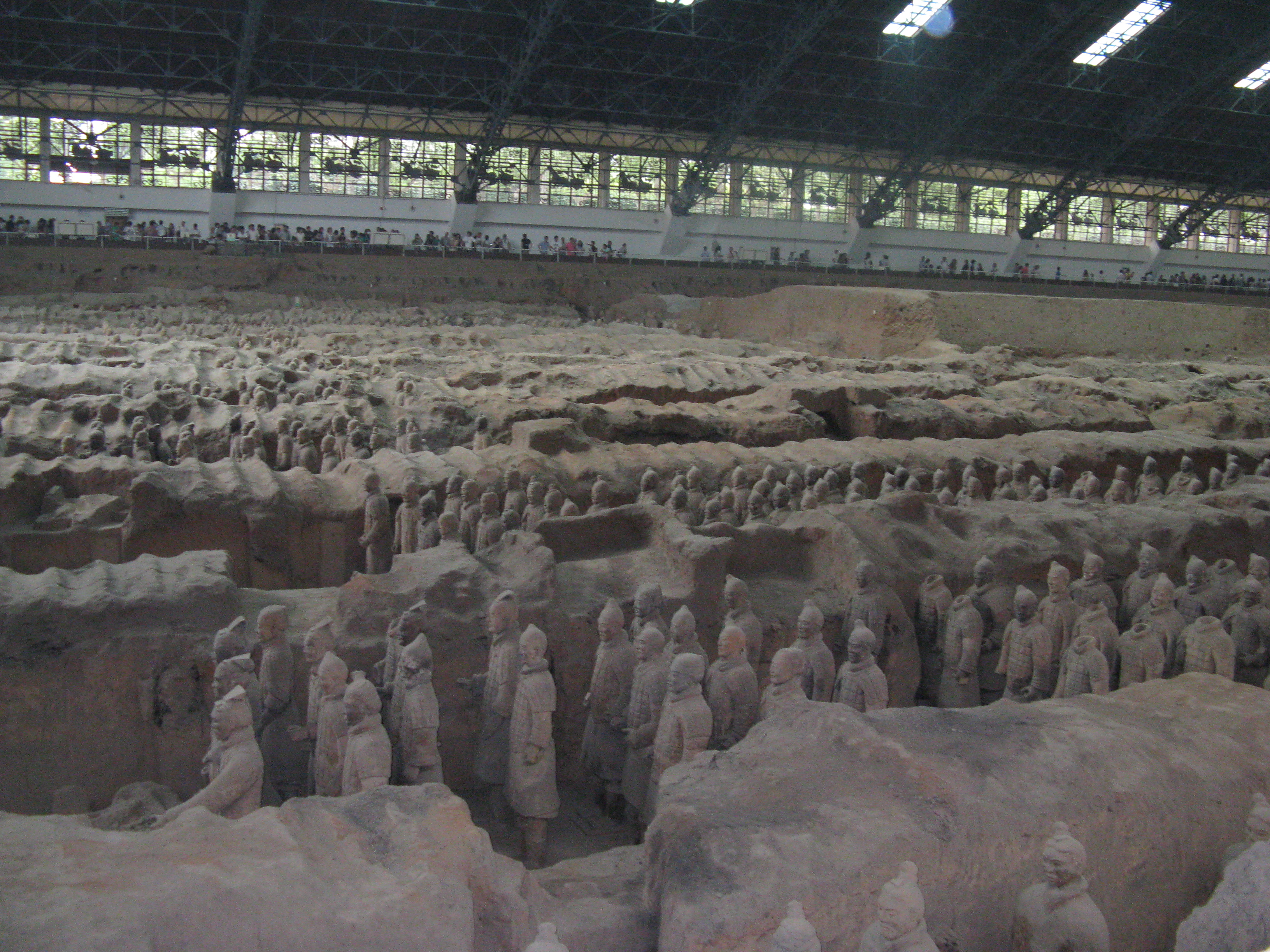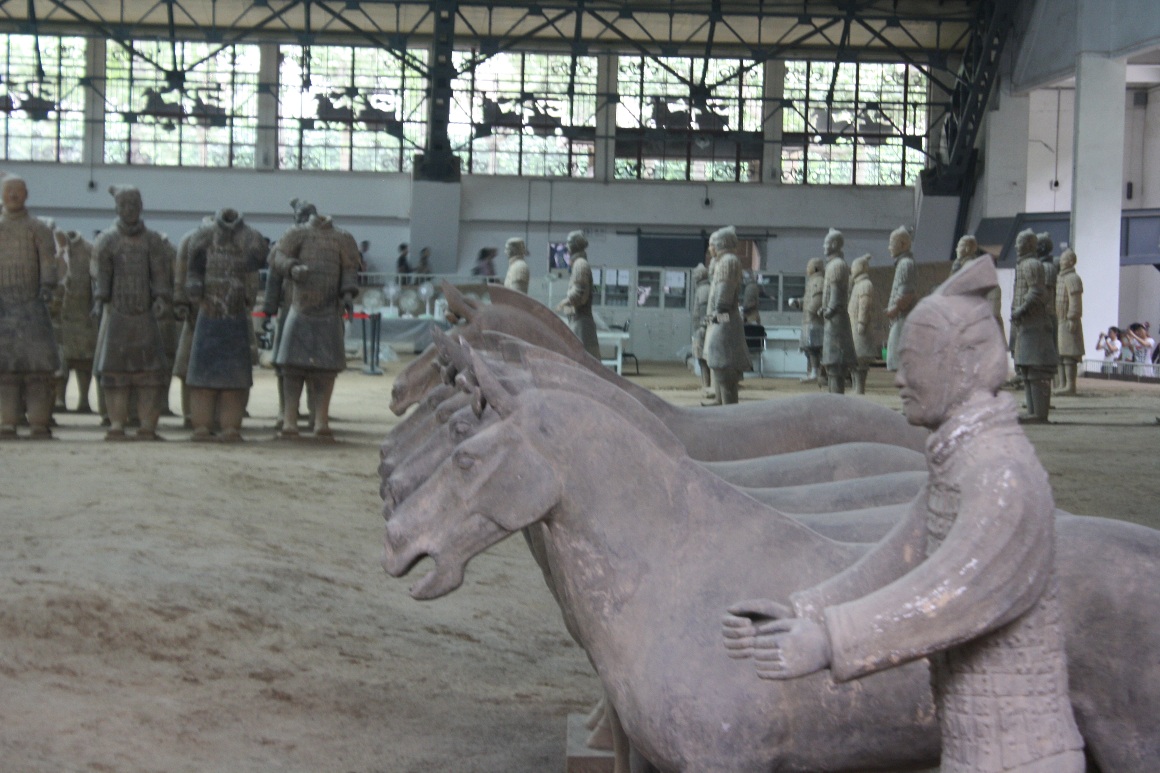 There are three pits which have been dug to expose the terracotta army. The majority of the Army is still buried underground.